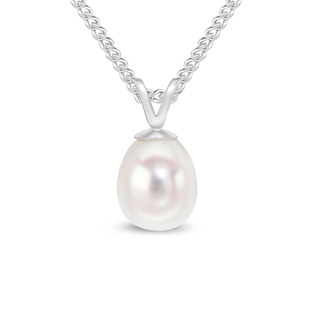 9ct White Gold 8mm Freshwater Pearl Drop Pendant