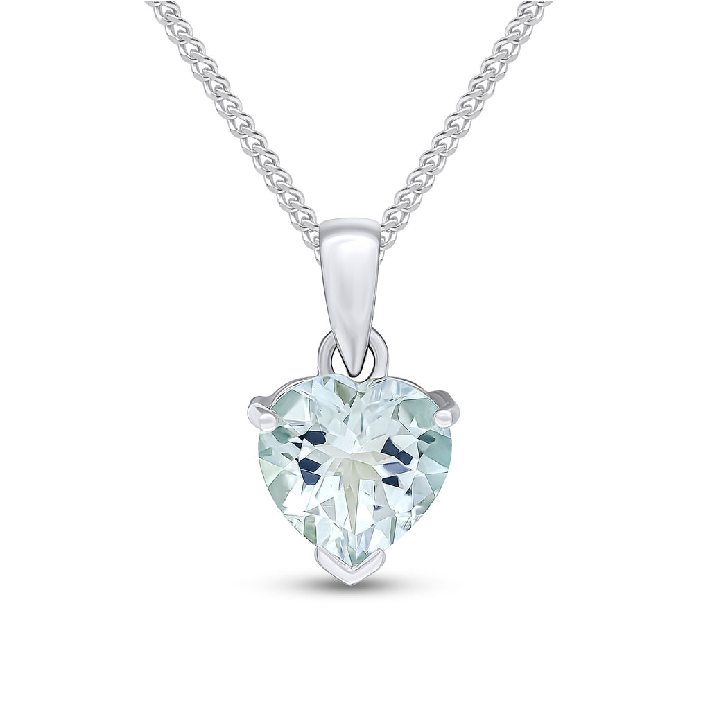 9CT White Gold Heart Aquamarine Claw Pendant 8mm