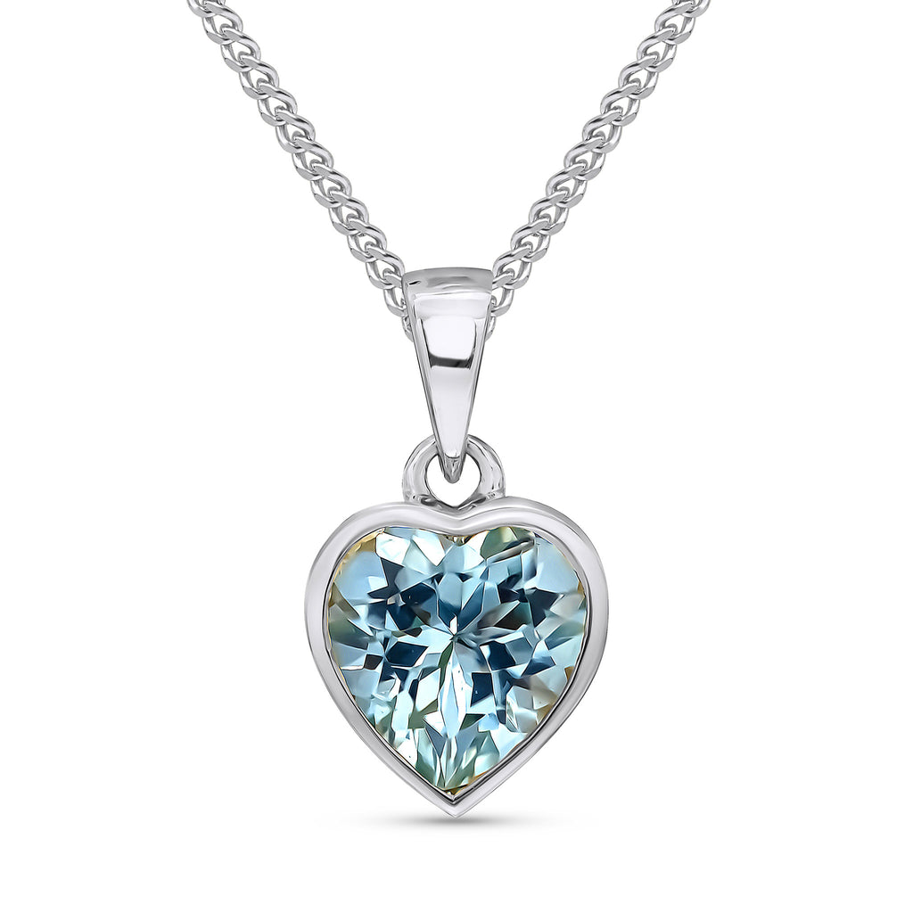 9CT White Gold Heart Aquamarine Rubover Pendant 8mm