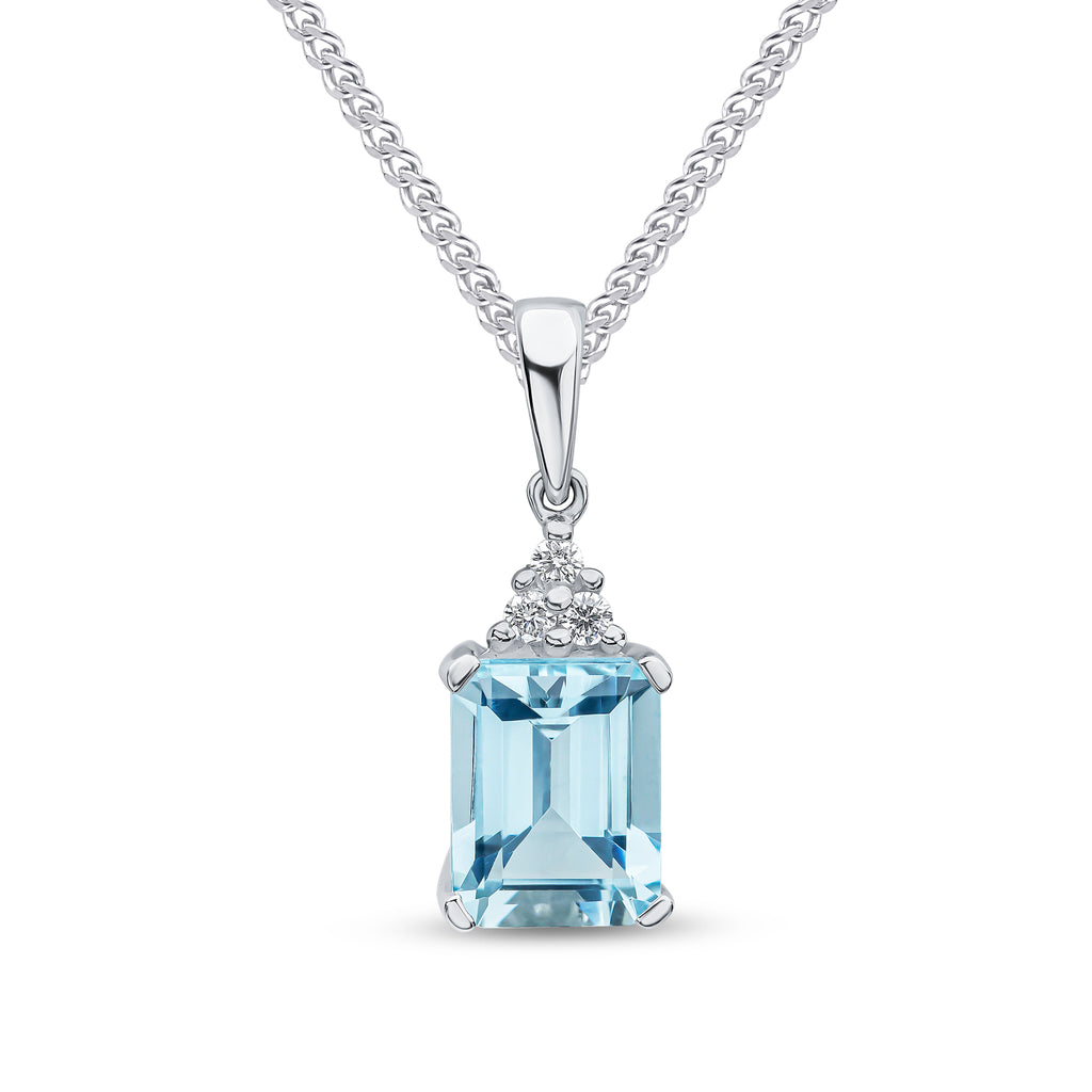 18CT White Gold Octagonal Aquamarine & Round Diamond Trefoil Top Pendant 9x7mm