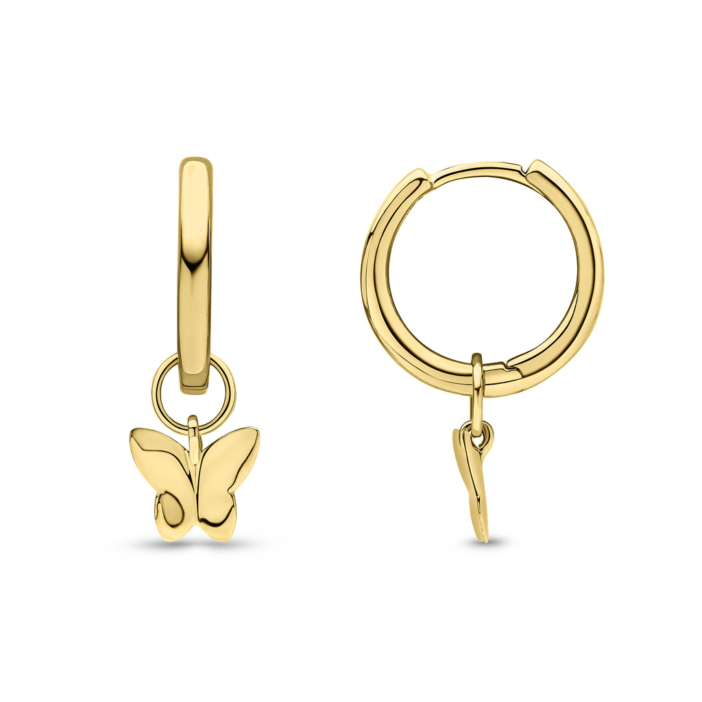9CT Yellow Gold Polished Hinged Hoop Earrings With Detachable Butterfly Drop 16mm