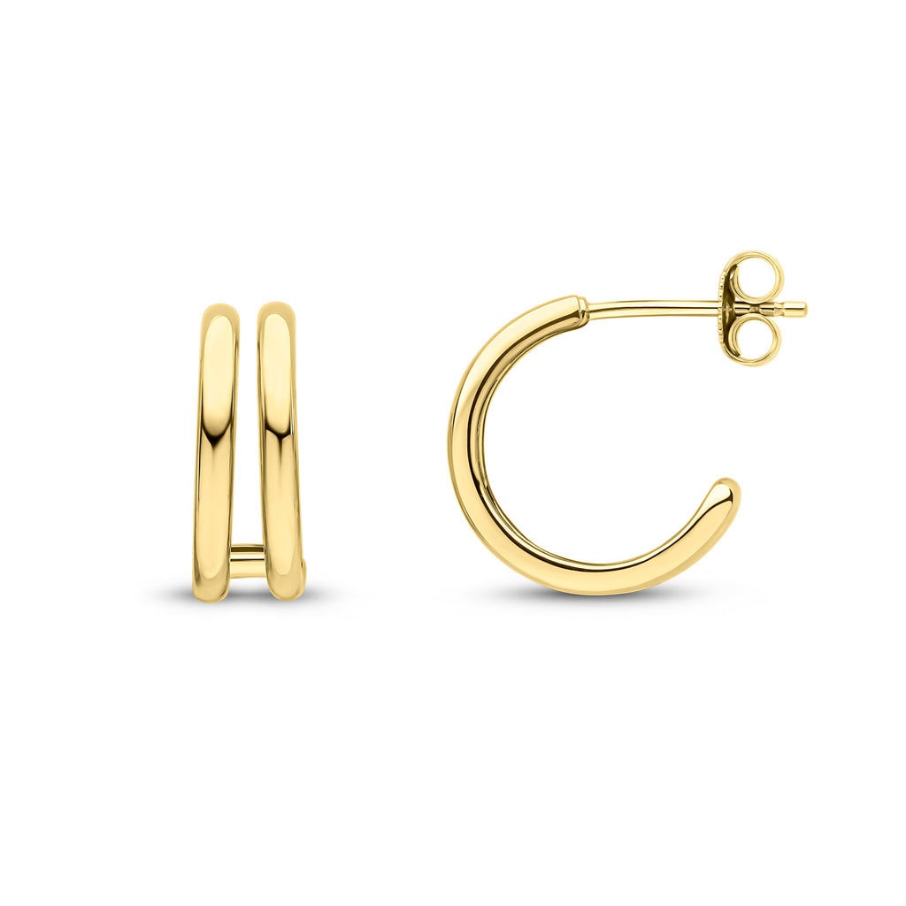 9CT Yellow Gold Polished Double Row Half Hoop Earrings