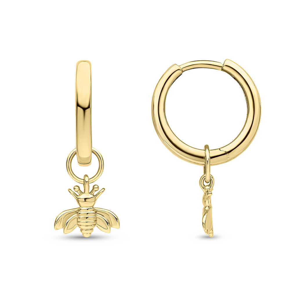 9CT Yellow Gold Polished Hinged Hoop Earrings With Detachable Bee Drop 16mm