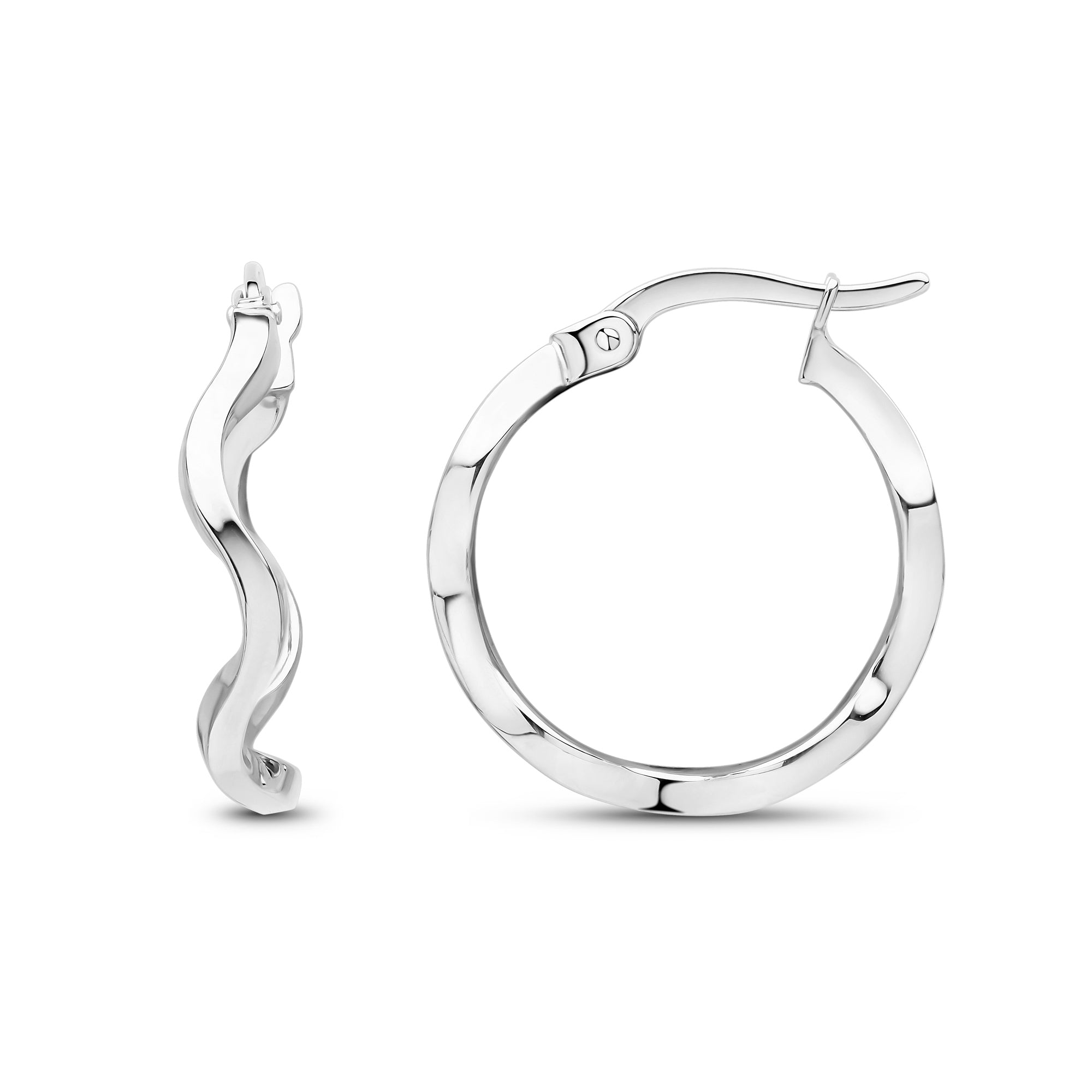 9CT White Gold Round Polished Wavy Hoop Earrings 18mm