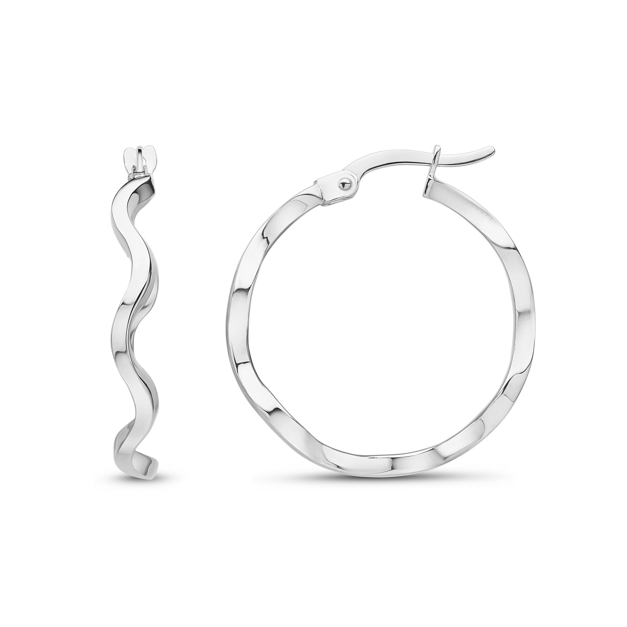 9CT White Gold Round Polished Wavy Hoop Earrings 23mm