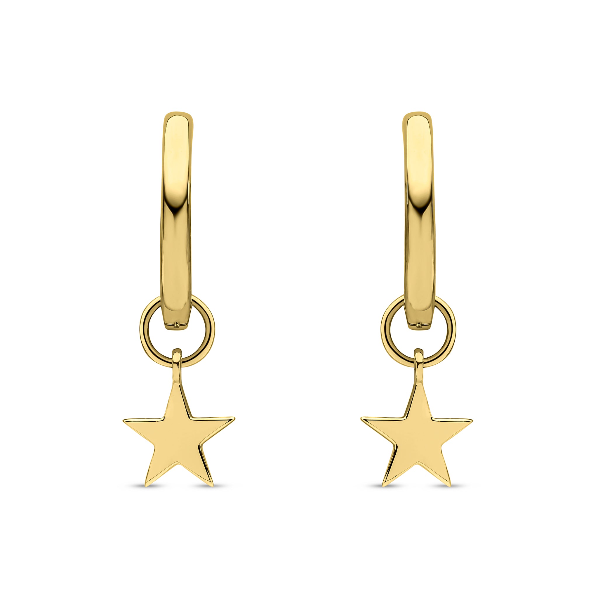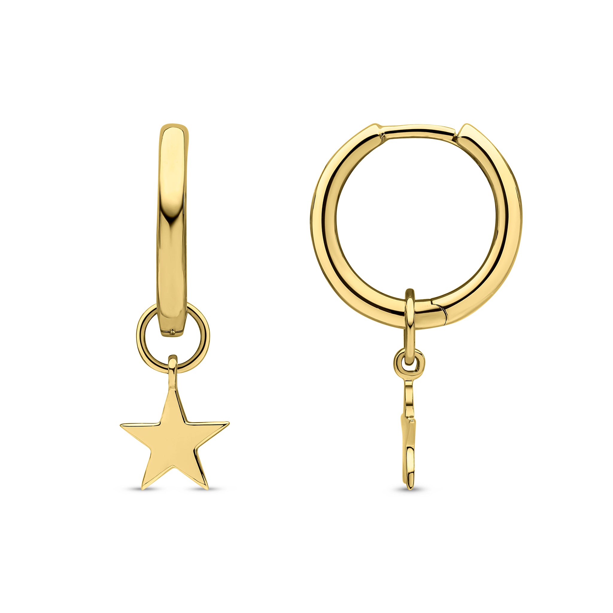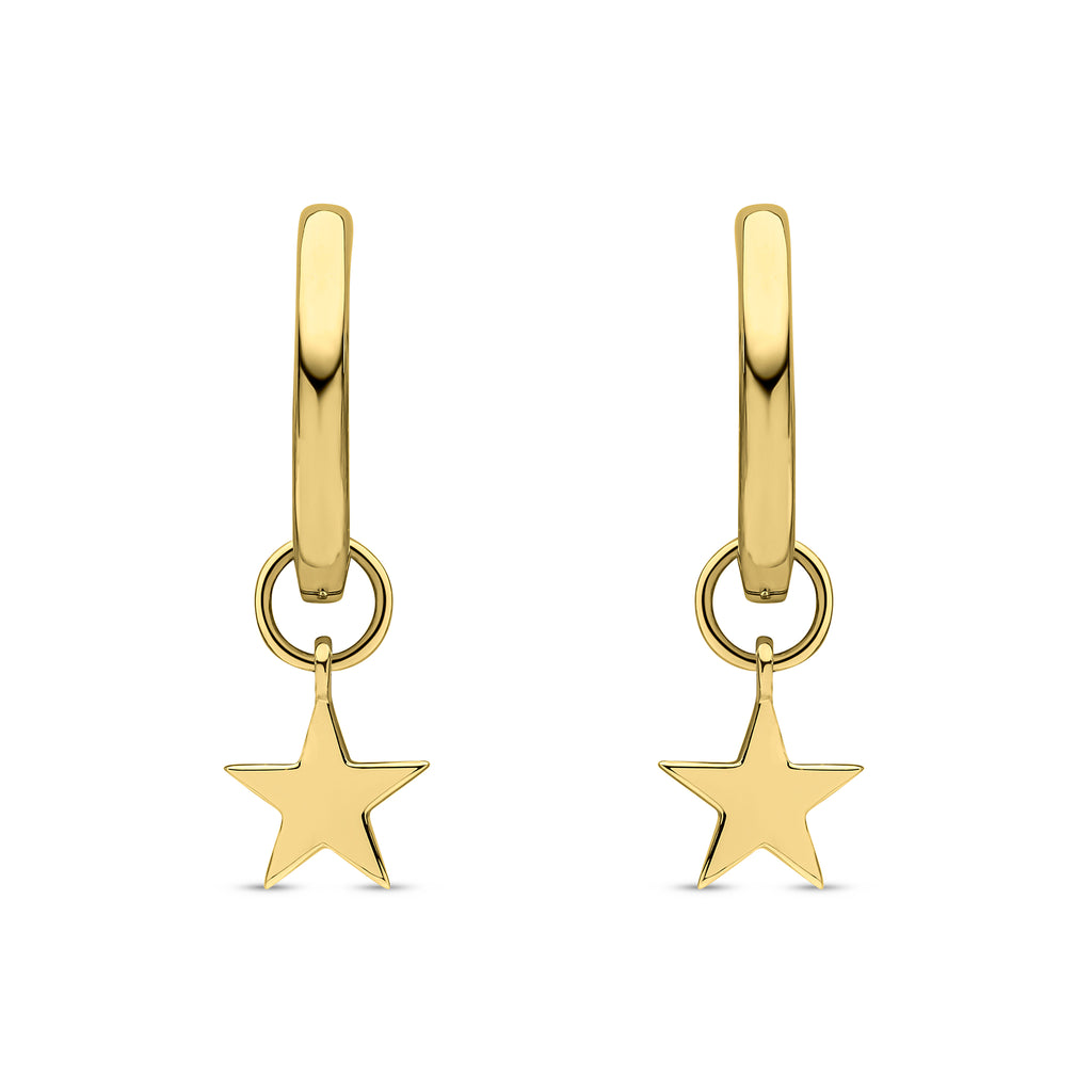 9CT Yellow Gold Polished Hinged Hoop Earrings With Detachable Star Drop 16mm