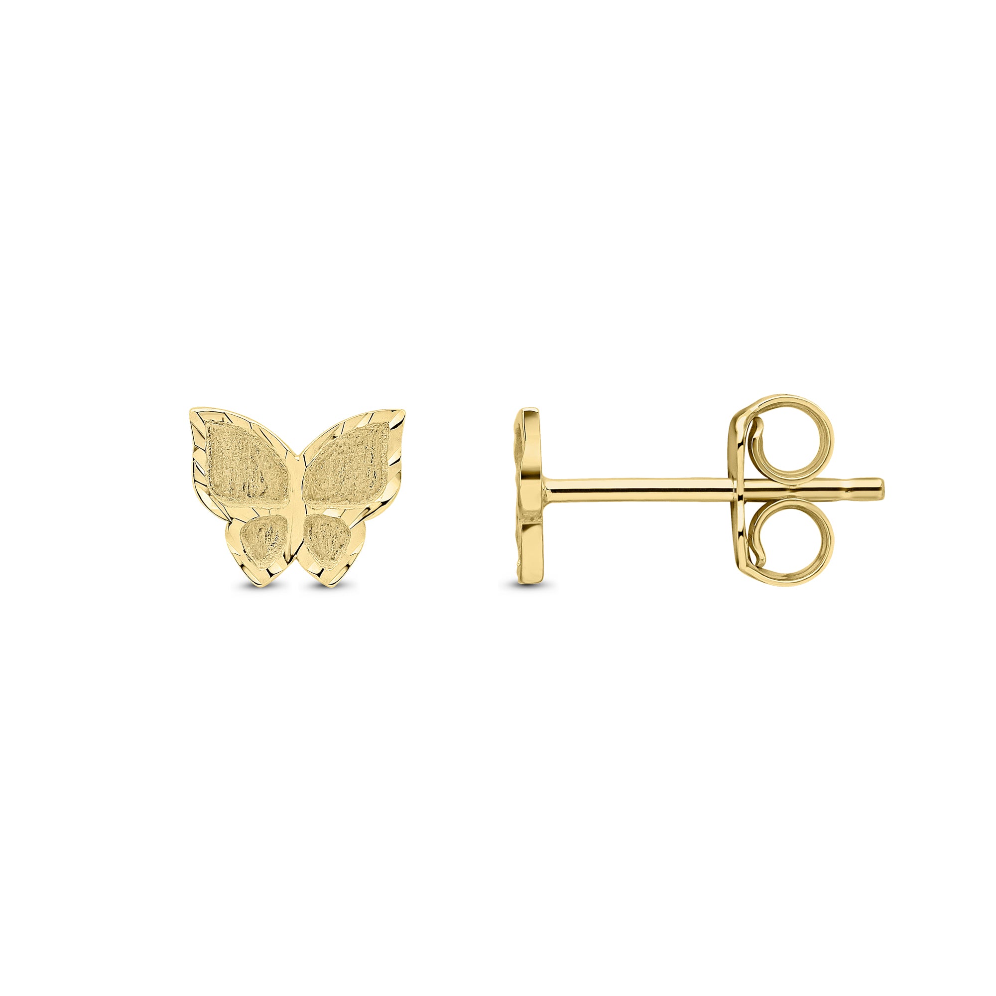 9CT Yellow Gold Satin & Polished Butterfly Stud Earrings