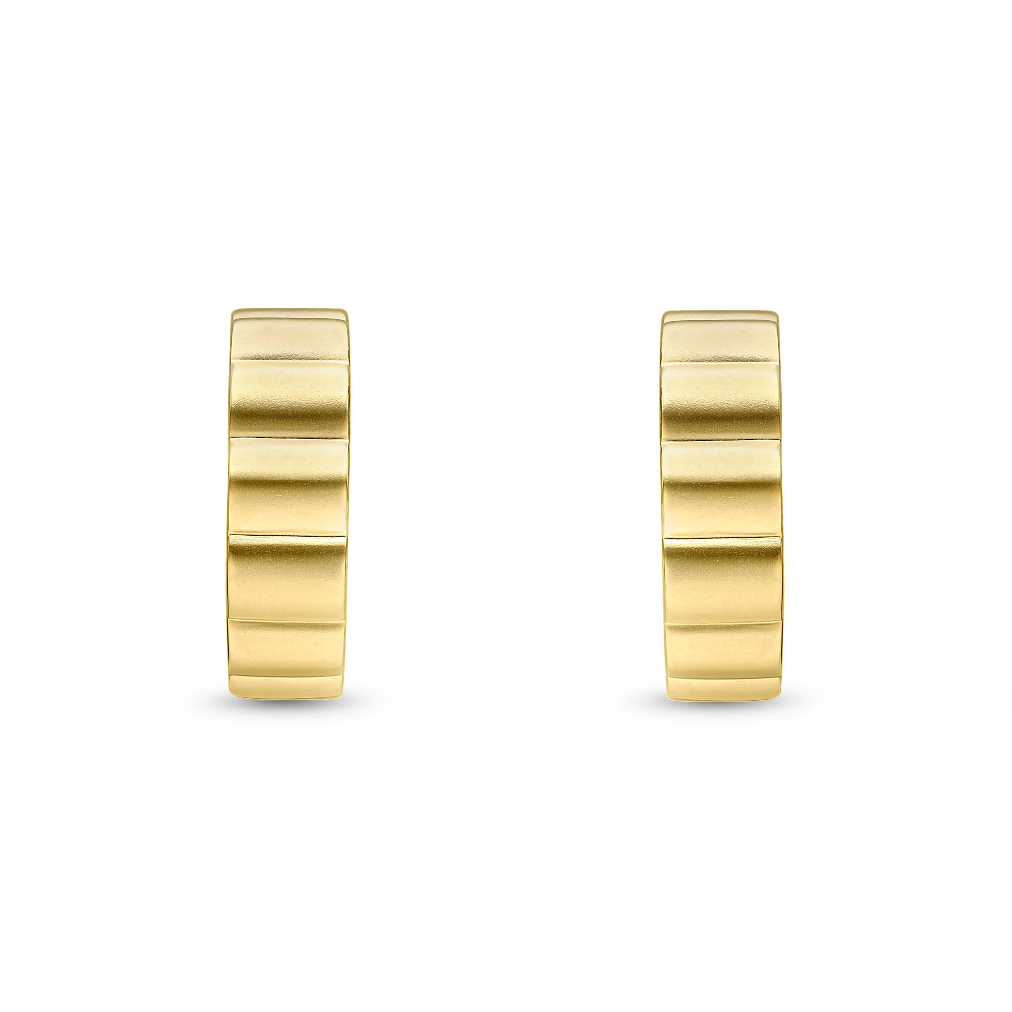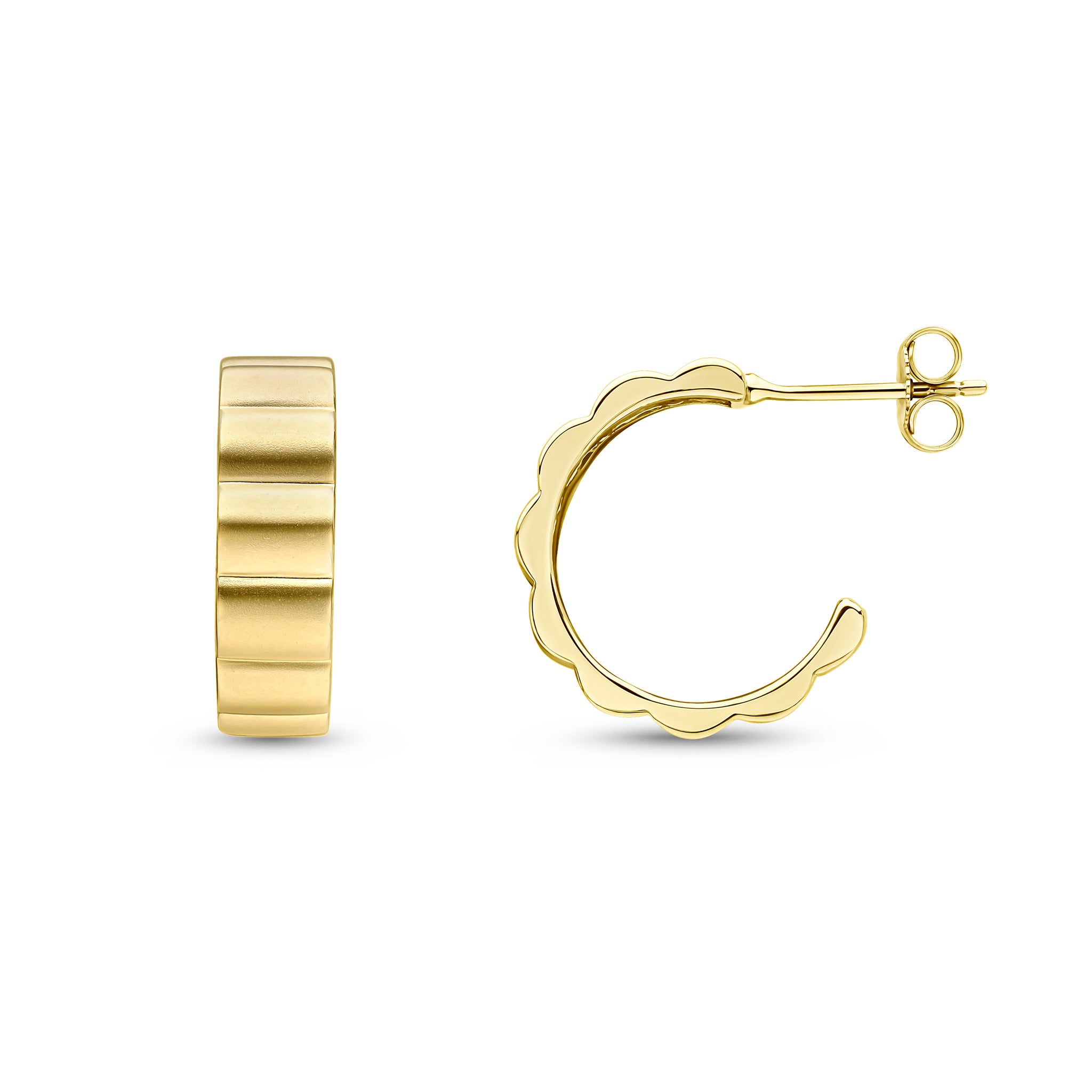 9CT Yellow Gold Satin Ribbed Half Hoop Earrings 13.5mm