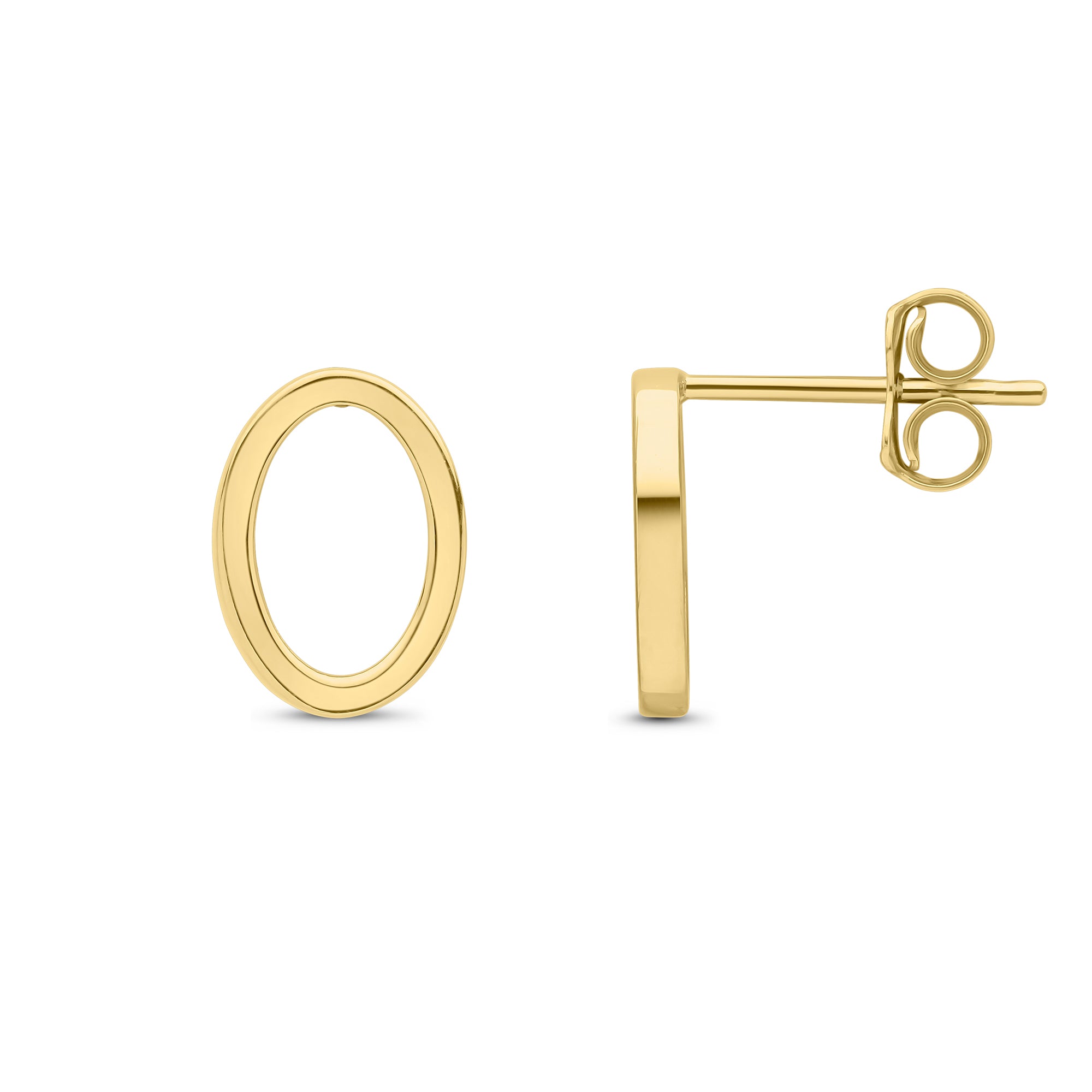 9CT Yellow Gold Square Tube Open Oval Stud Earrings