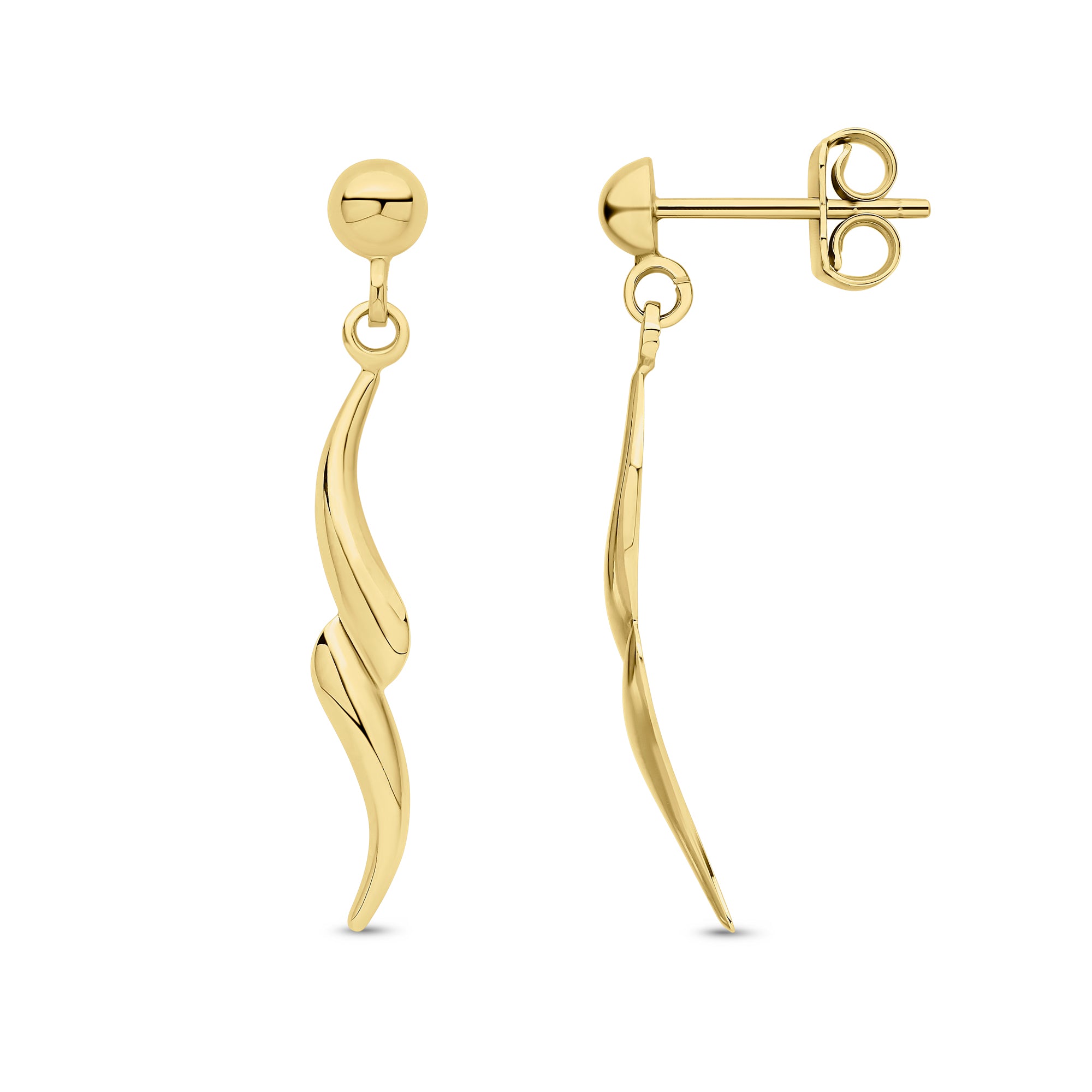 9CT Yellow Gold Squiggle Drop Earrings with Half Bead Top 31mm