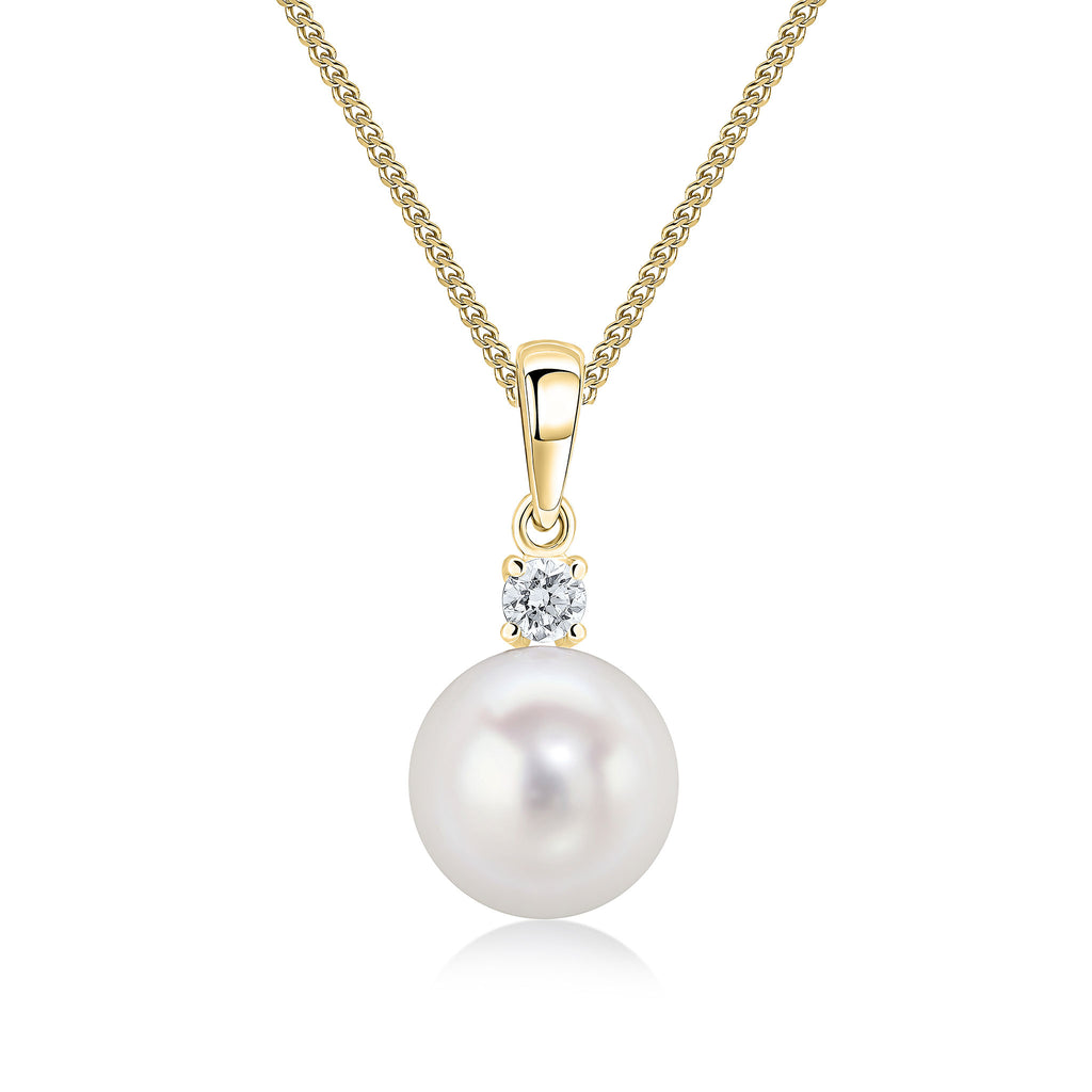 18CT Yellow Gold Pearl & Claw Set Diamond Two Stone Pendant 8.5-9mm