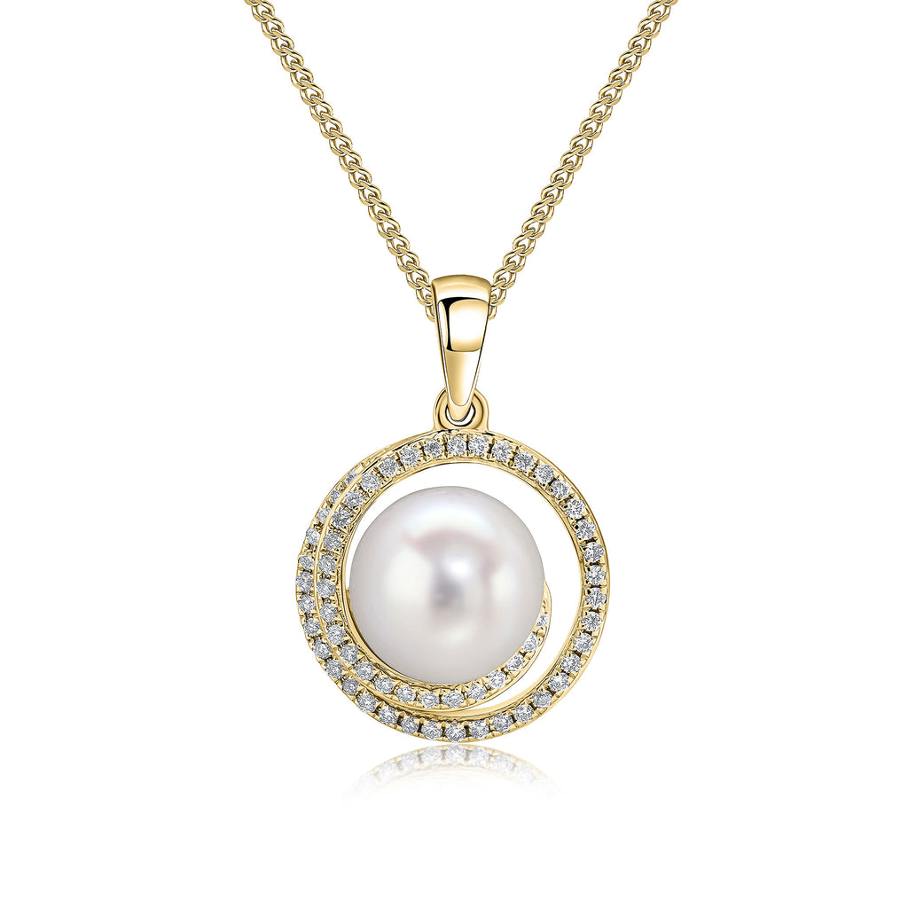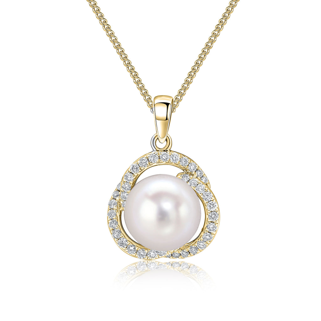 18CT Yellow Gold Pearl & Diamond Loop Pendant