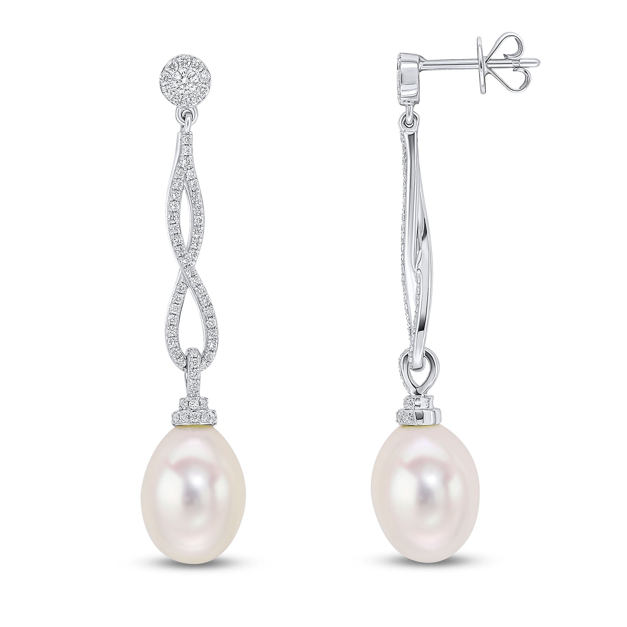 18ct White Gold Diamond '8' & Pearl Drop Earrings