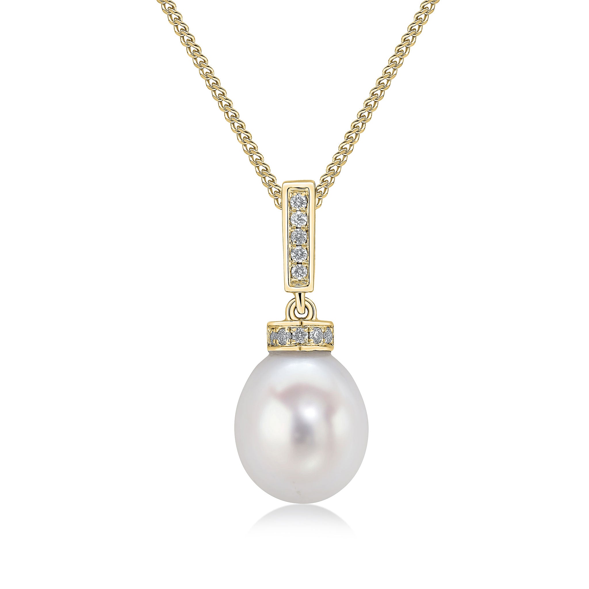 18CT Yellow Gold Pearl & Diamond Line Pendant