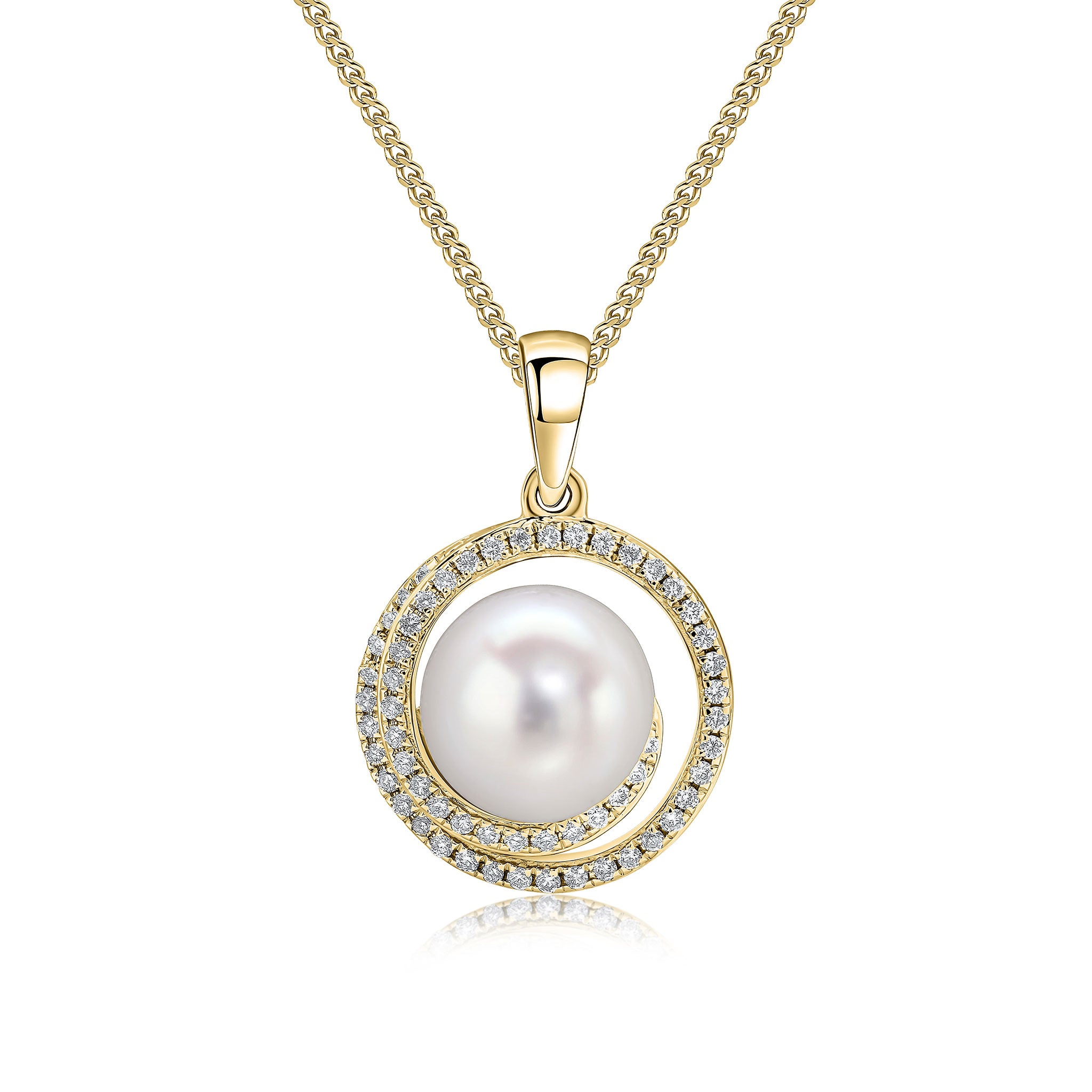 18CT Yellow Gold Pearl & Diamond Swirl Cluster Pendant