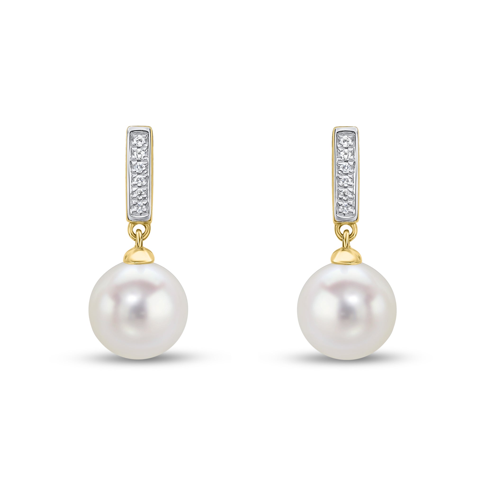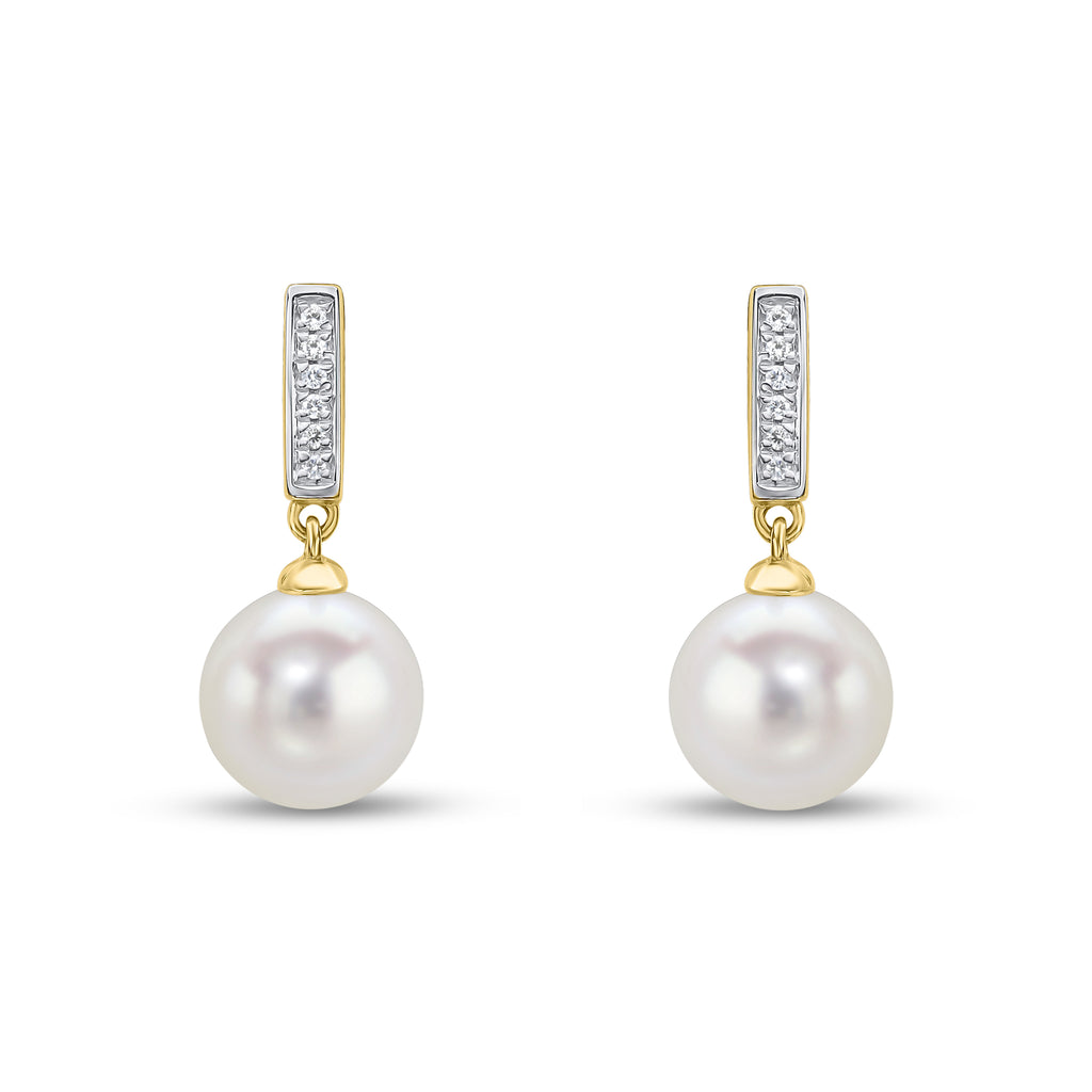 18CT Yellow Gold Pearl & Diamond Line Top Drop Earrings