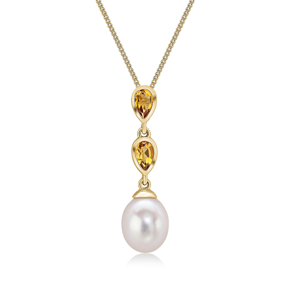 9CT Yellow Gold Pearl & Pear Shaped Citrine Drop Pendant