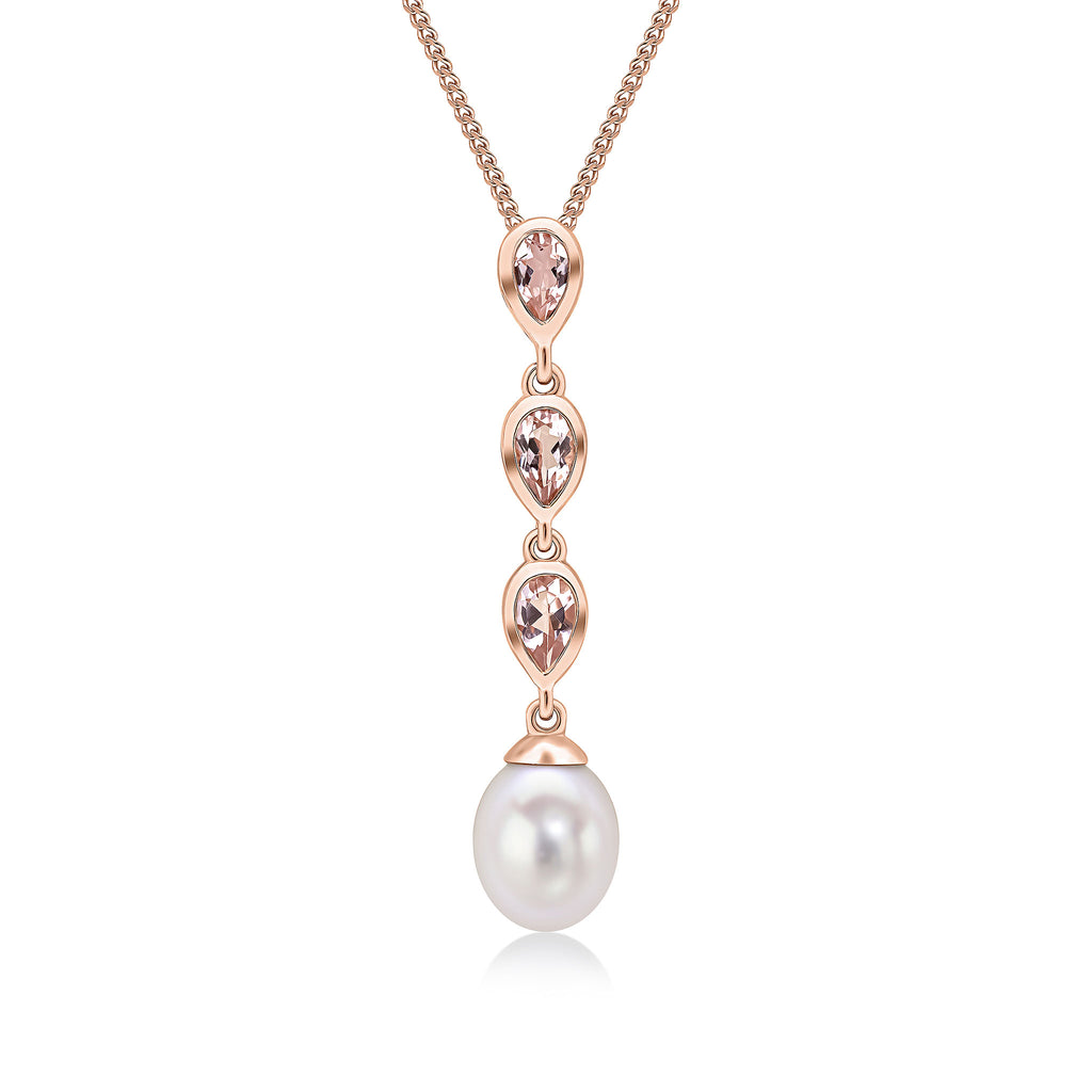 9CT Rose Gold Pearl & Pear Shaped Morganite Drop Pendant