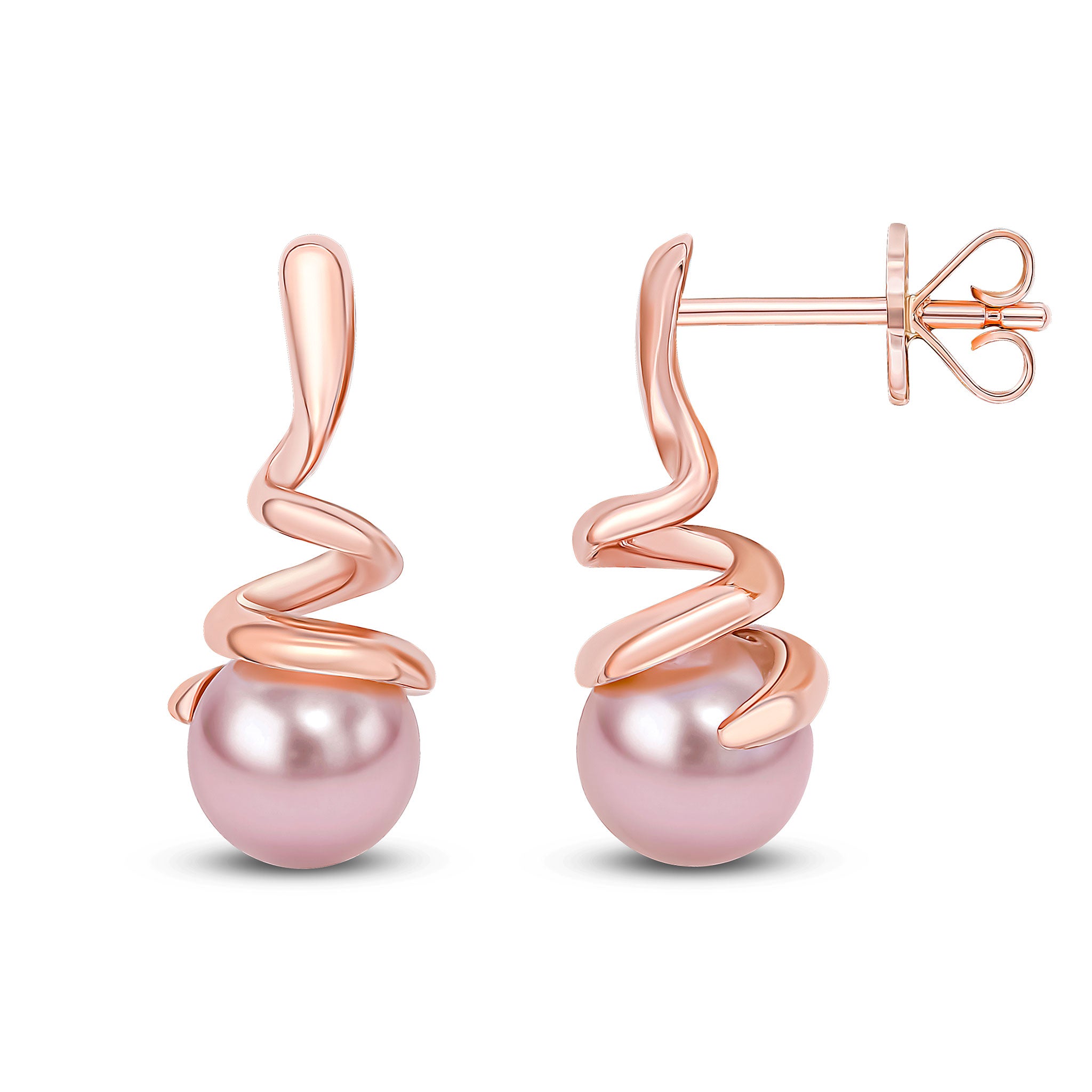 9CT Rose Gold Pink Freshwater Pearl Spiral Drop Earrings