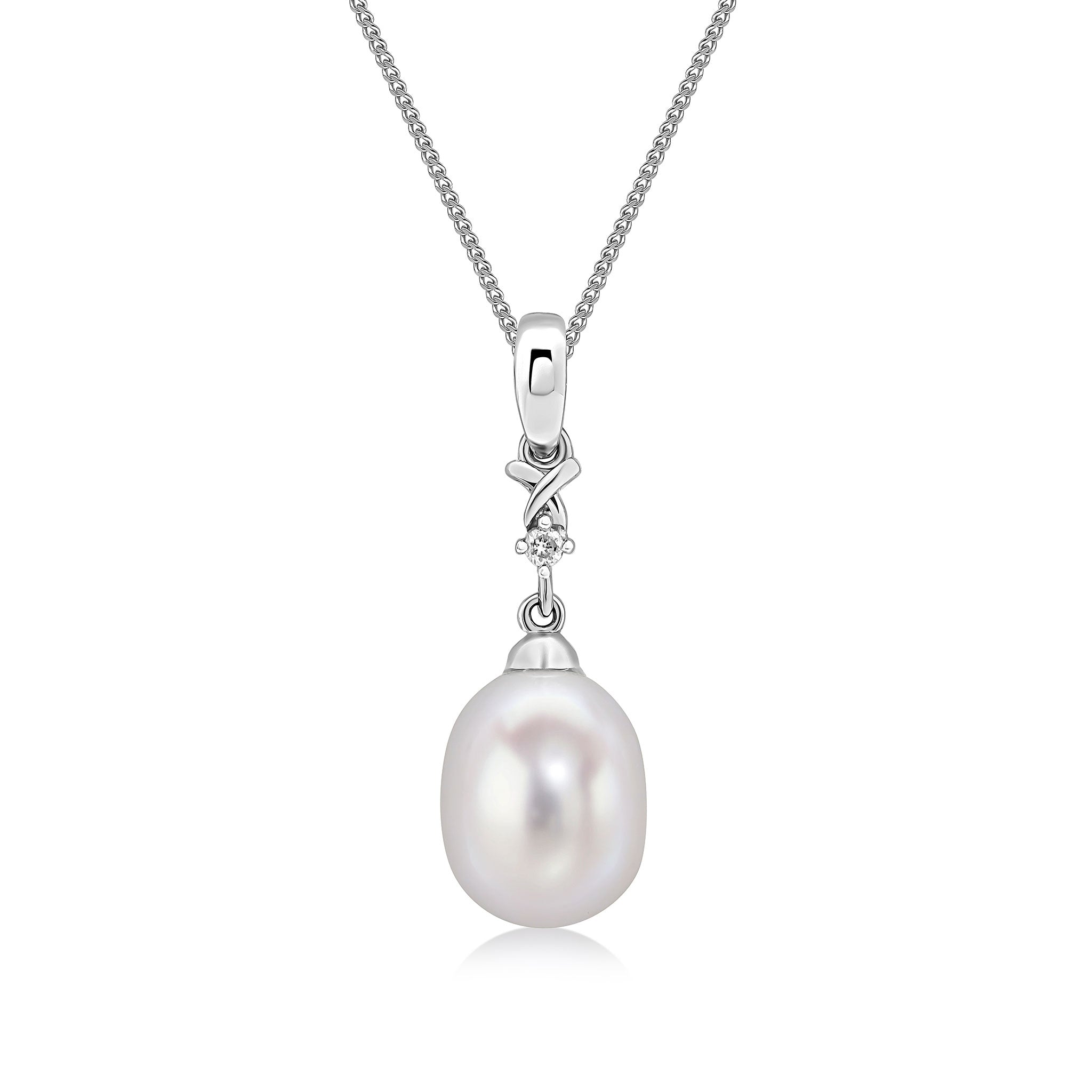 9ct White Gold Cultured Freshwater Pearl & Diamond Two Stone Pendant