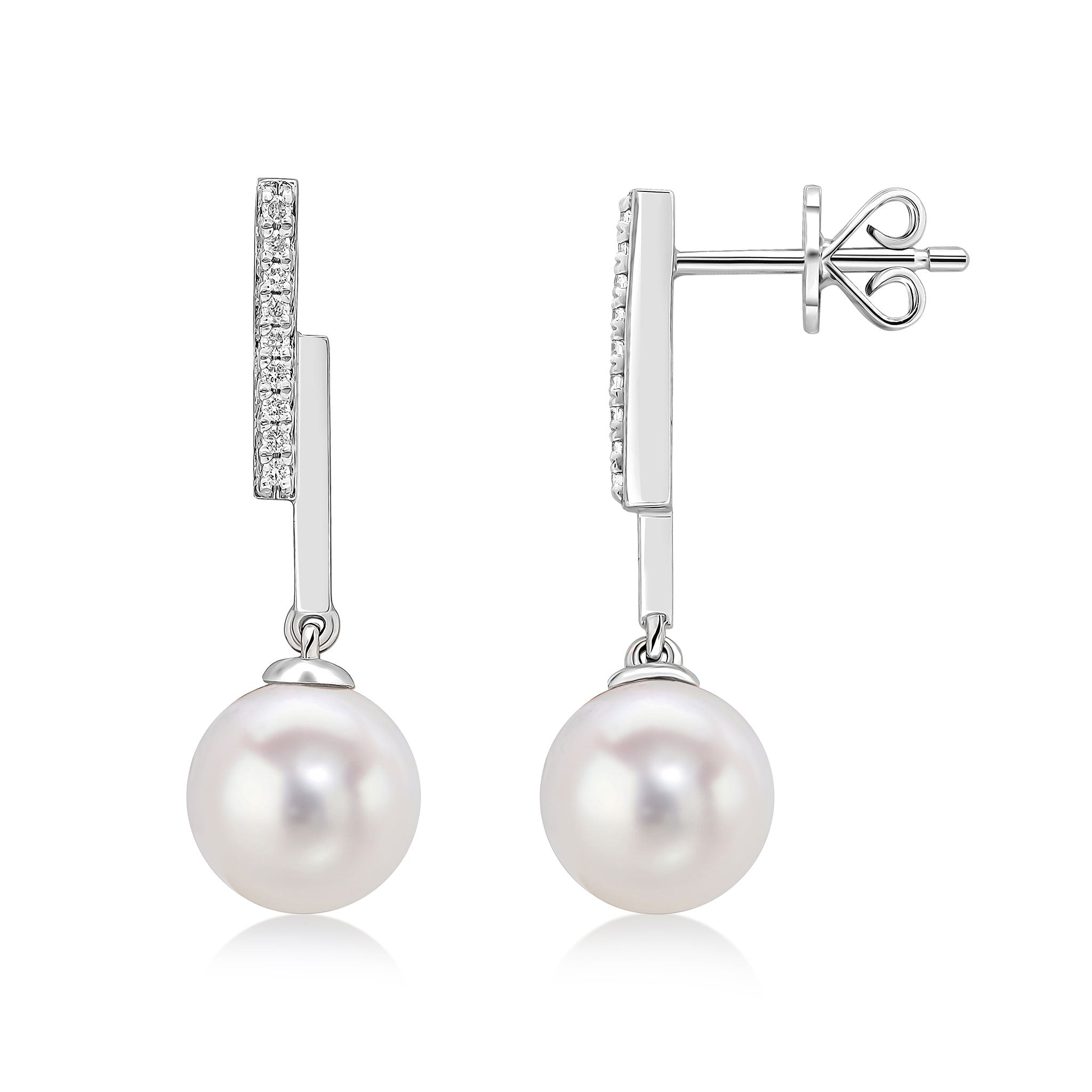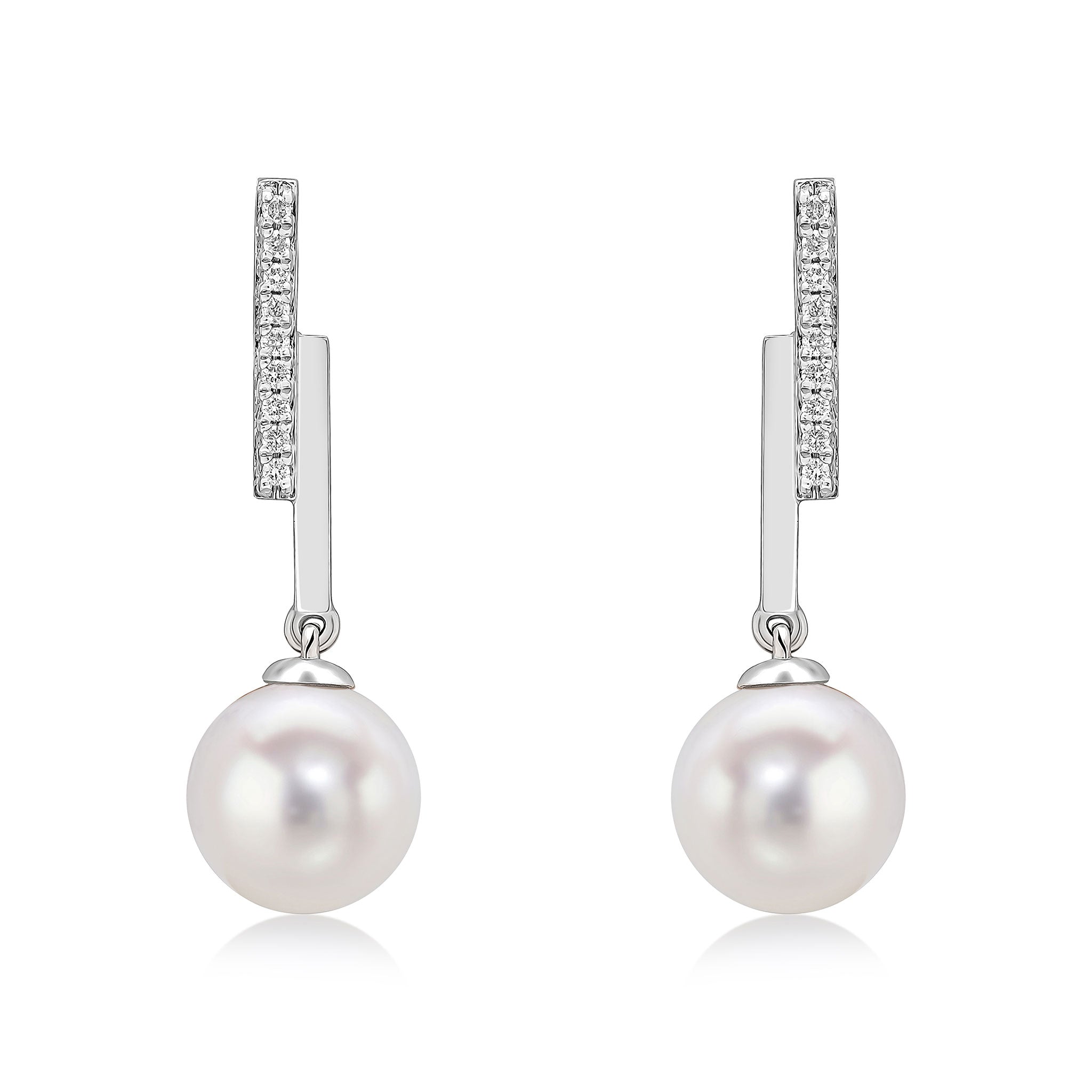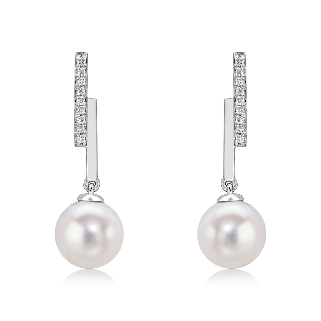 9ct White Gold Diamond & Pearl Double Bar Drop Earrings