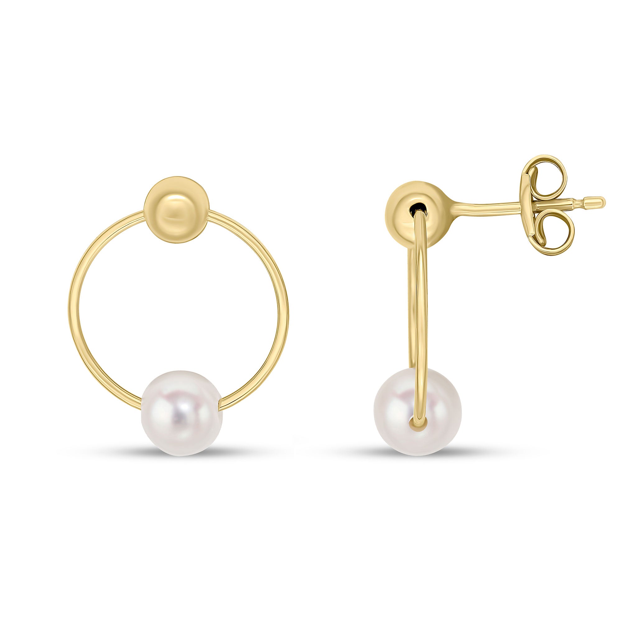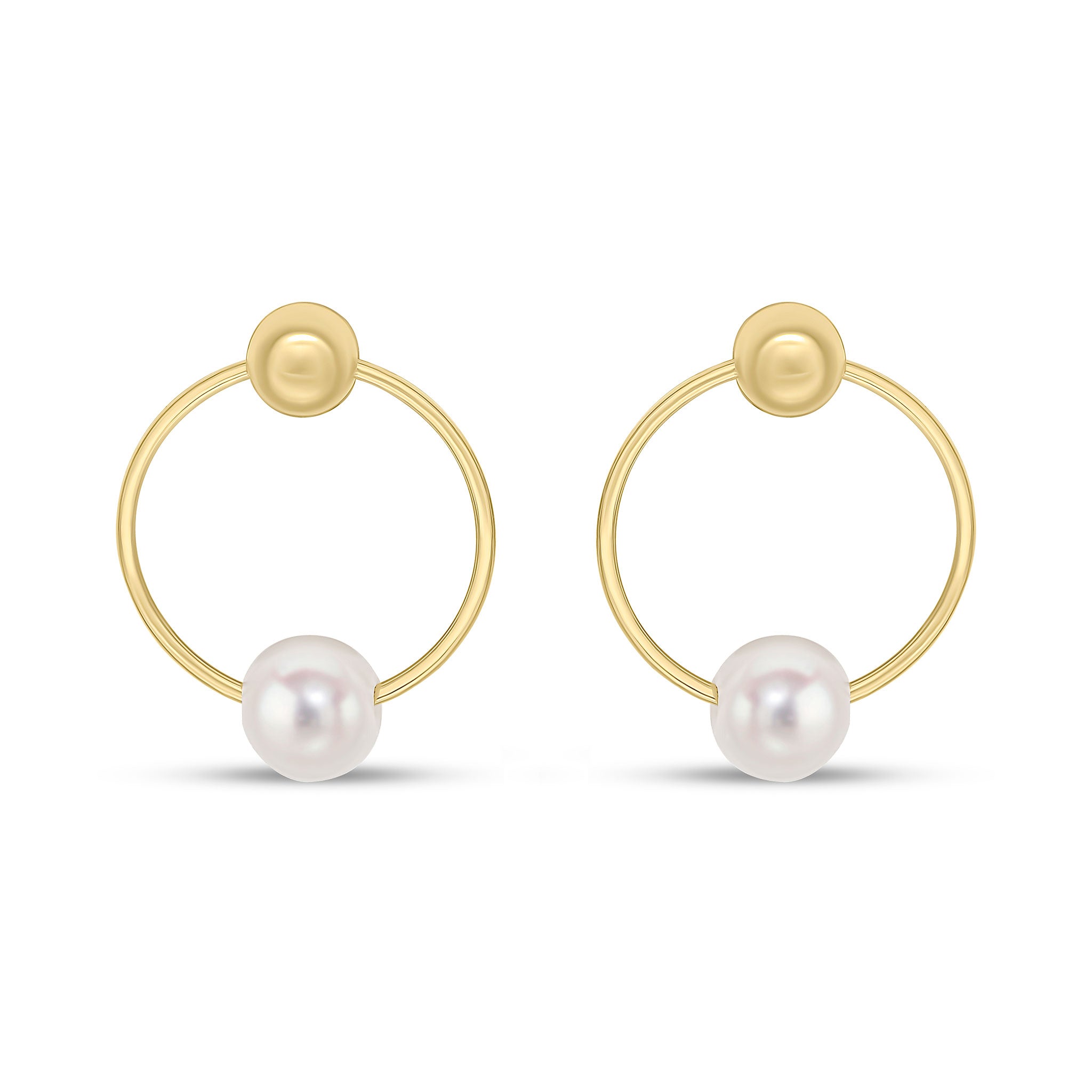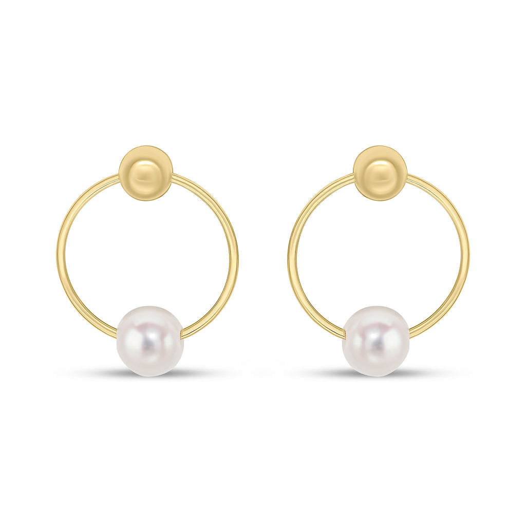 9CT Yellow Gold Ball and Freshwater Pearl on Circle Drop Earrings 17x13mm