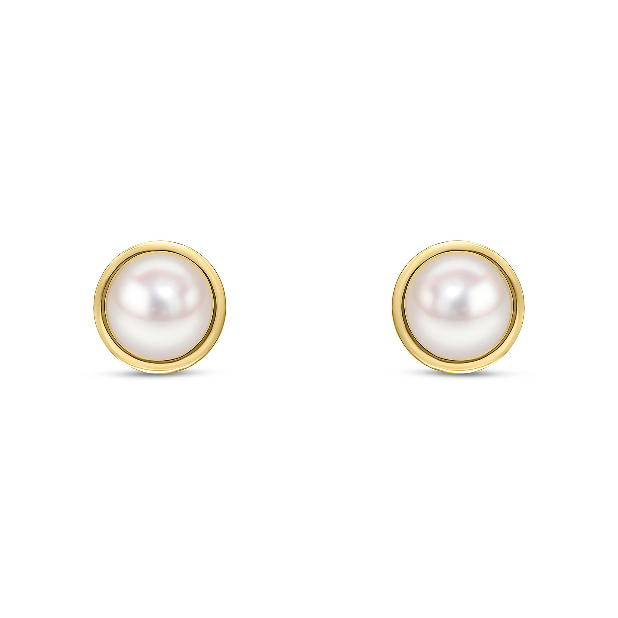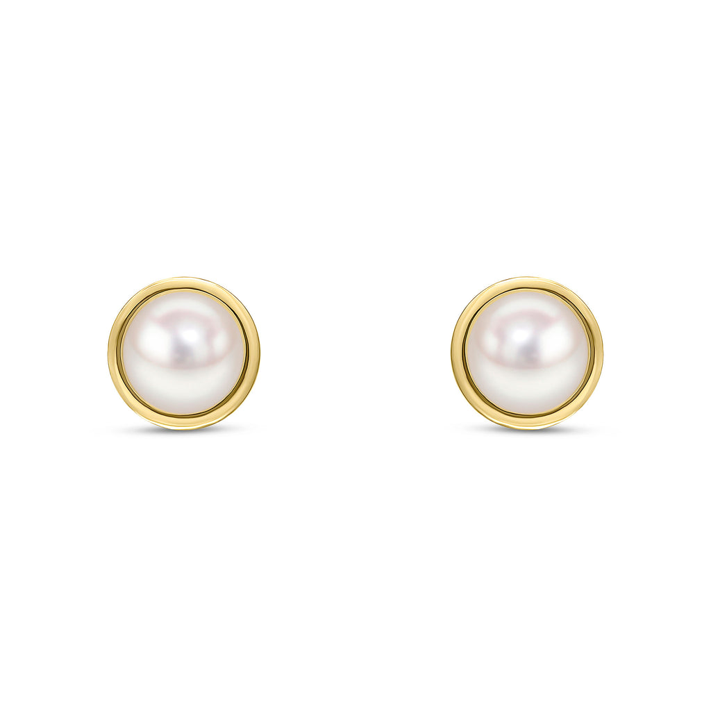 9CT Yellow Gold Flat Polished Border with 5.5mm Button Pearl Stud Earrings