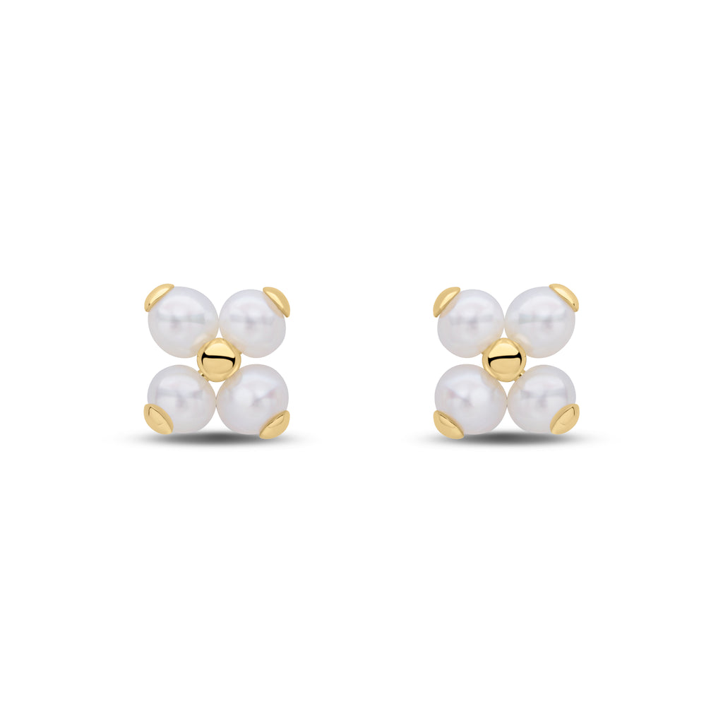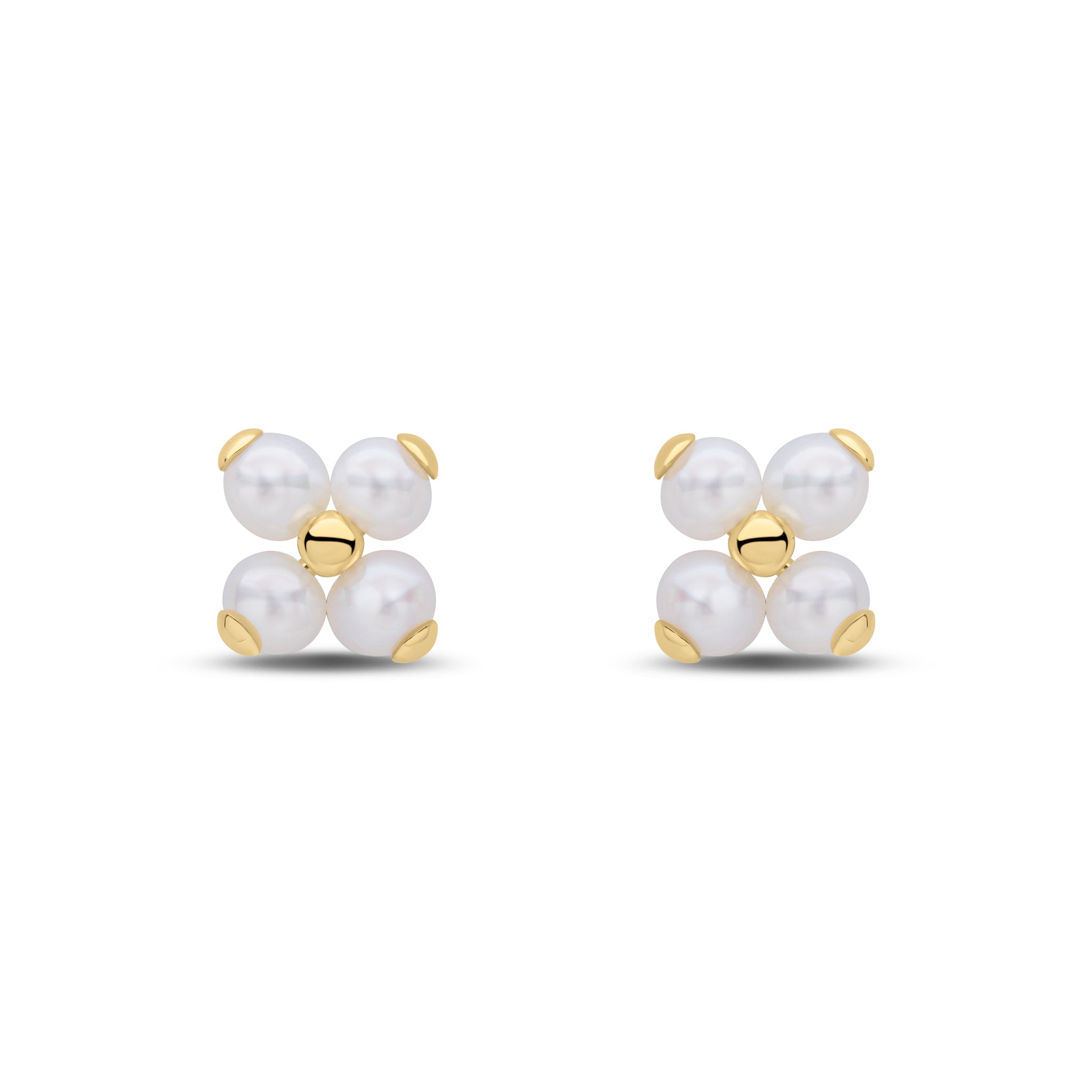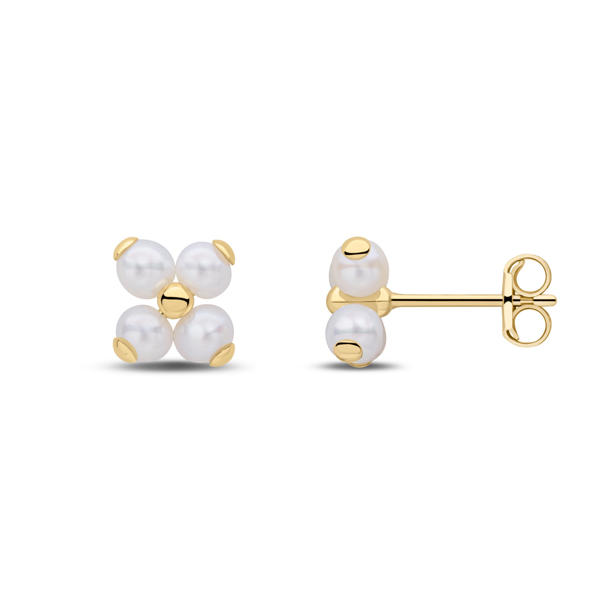 9CT Yellow Gold Four Stone Pearl Stud Earrings