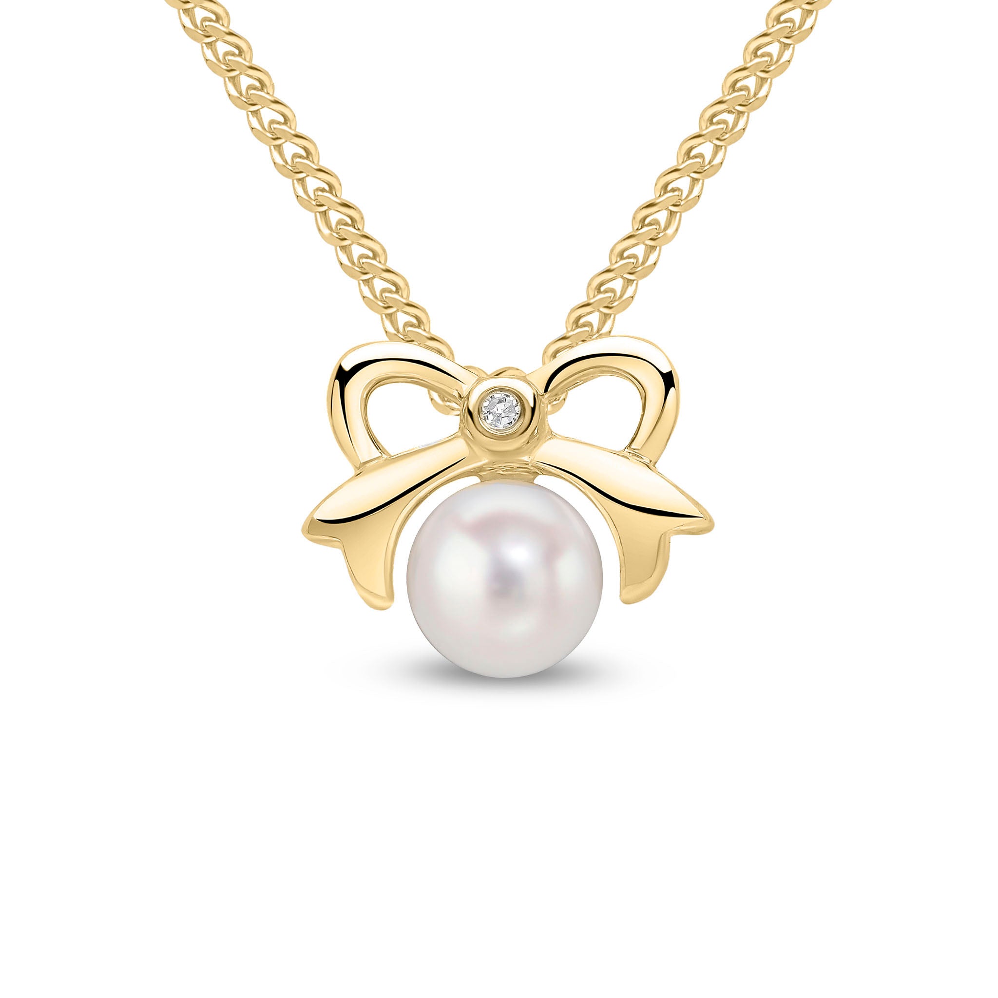 9CT Yellow Gold Pearl & Diamond Bow Pendant