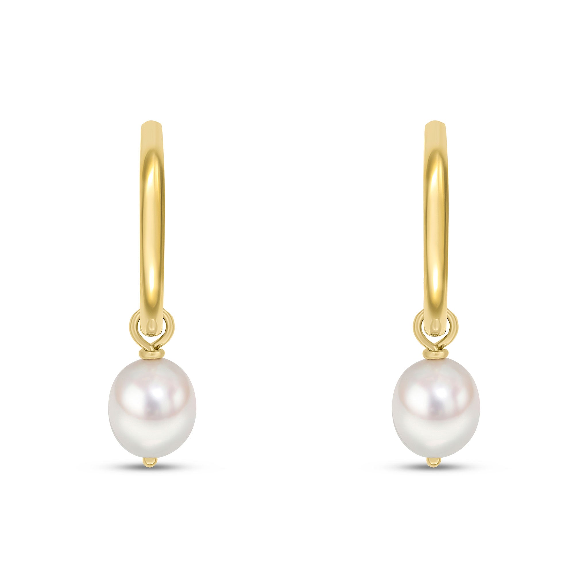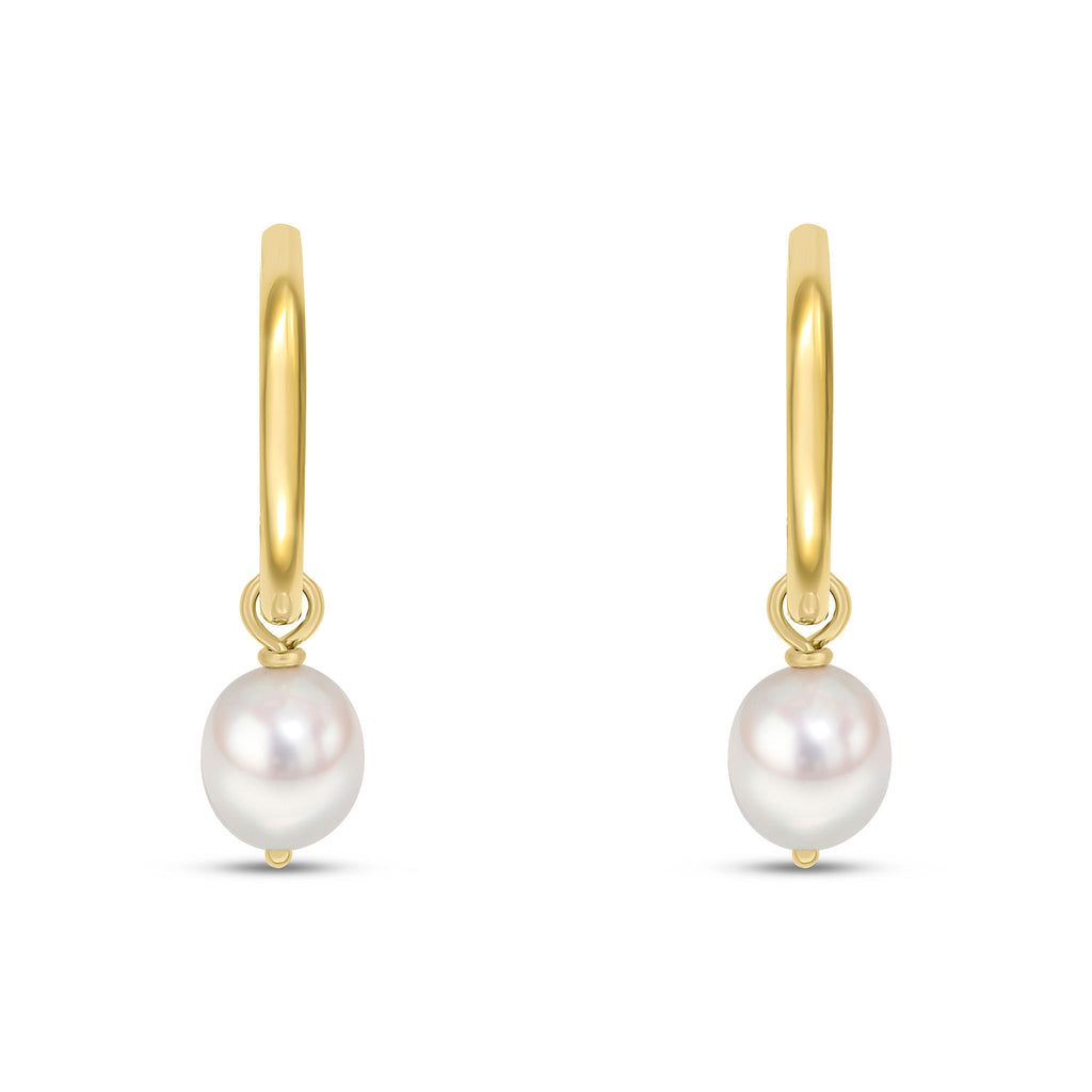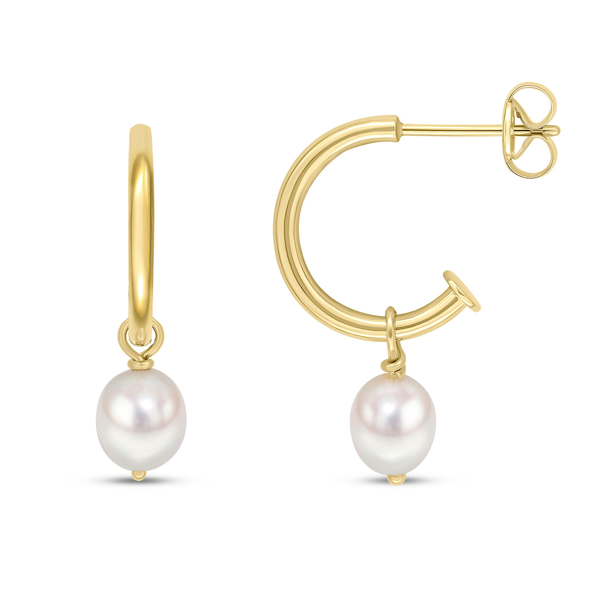 9CT Yellow Gold Polished Half Hoop Earrings with Detachable Pearl Drop