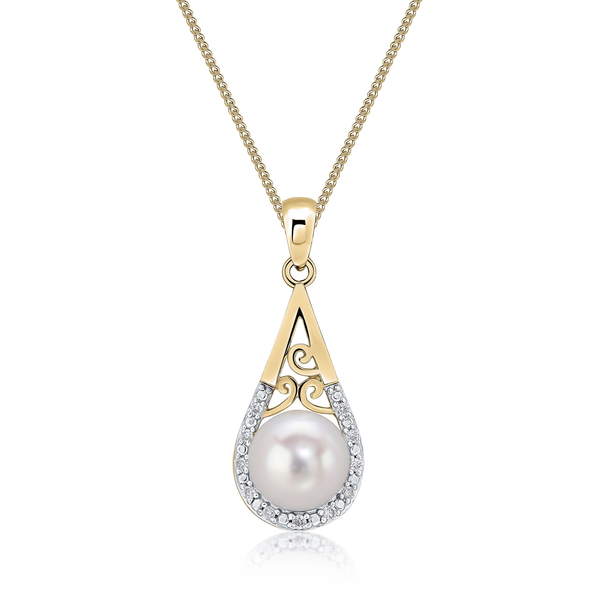 9ct Yellow Gold Diamond & Pearl Basket Pendant