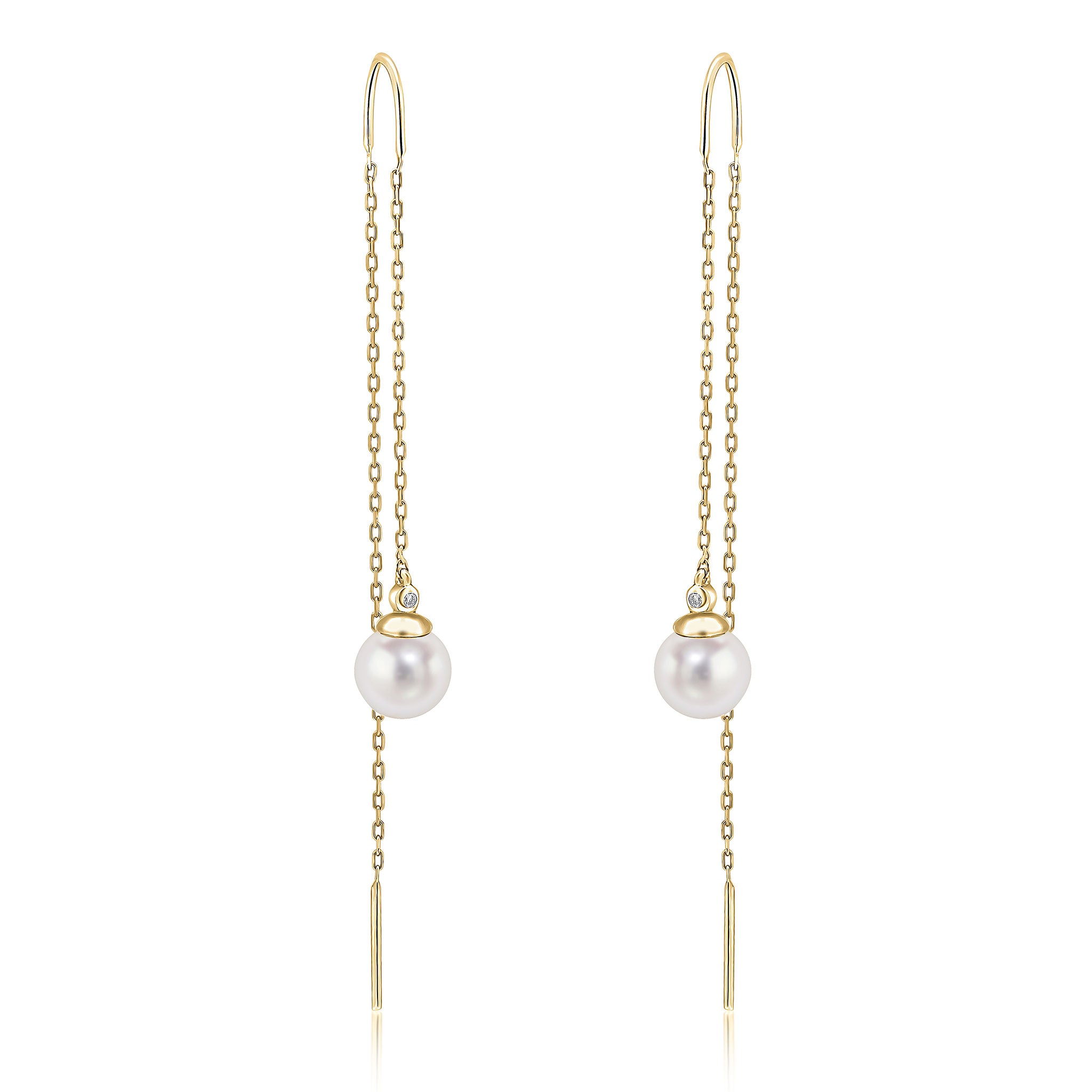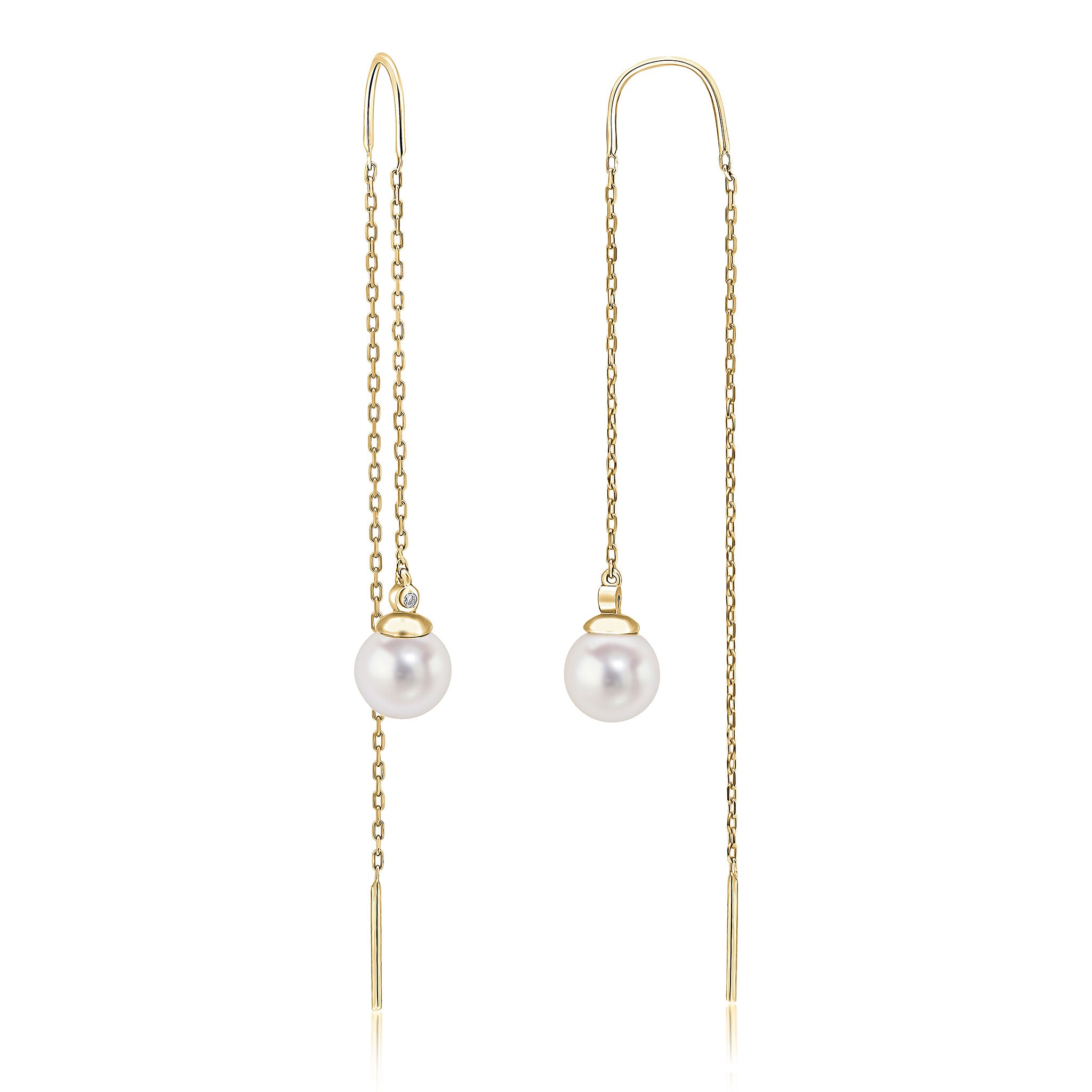9CT Yellow Gold Pearl & Diamond Pull Through Earrings