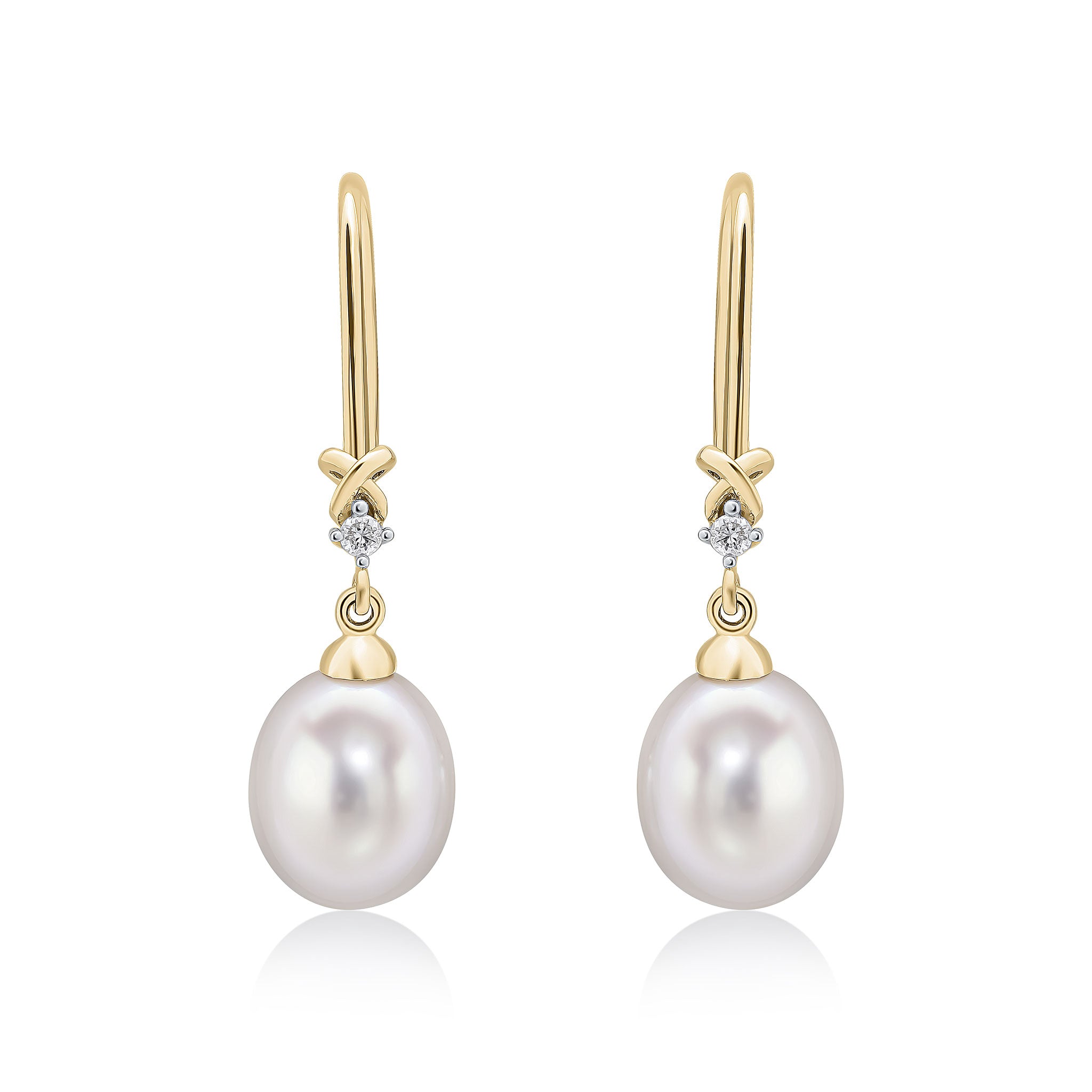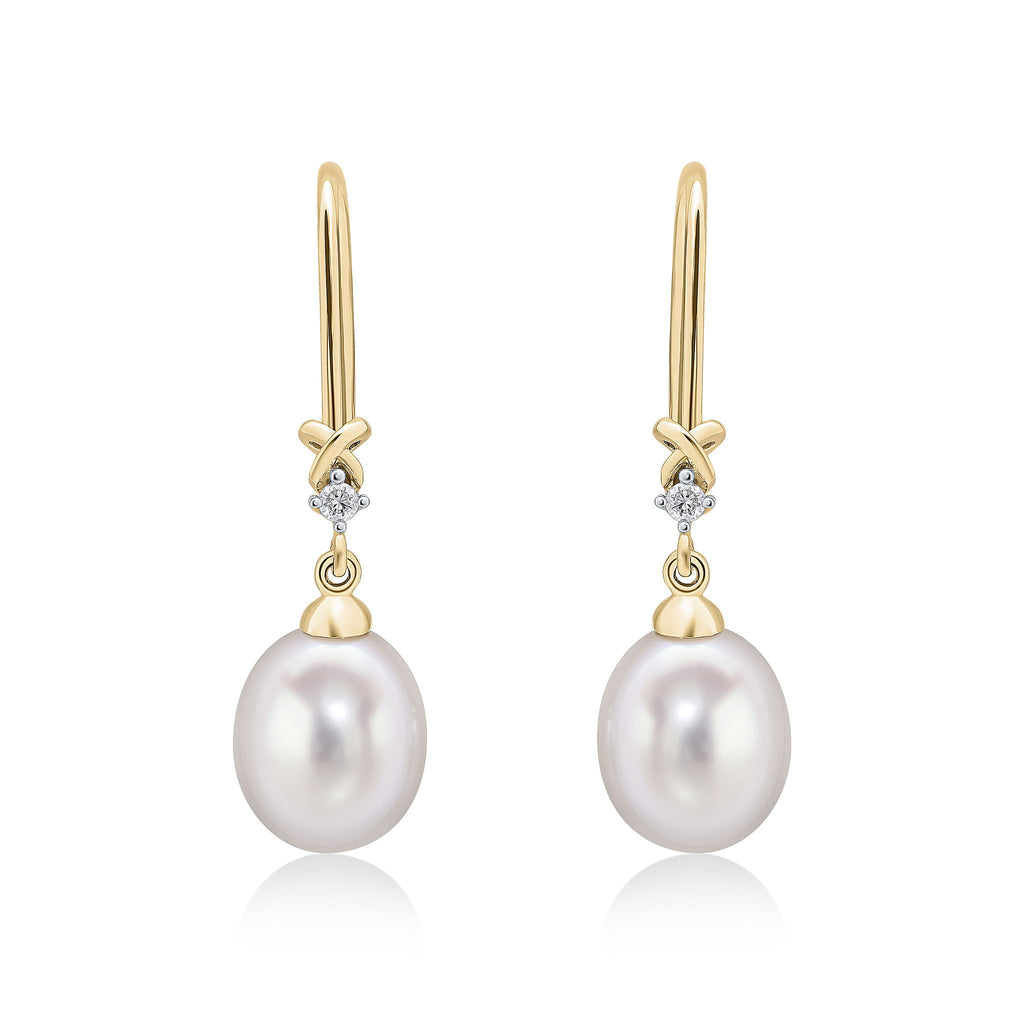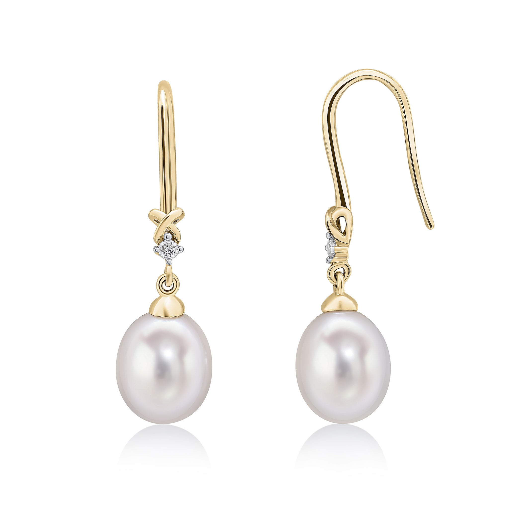 9CT Yellow Gold Diamond & Pearl Hook Knot Earrings