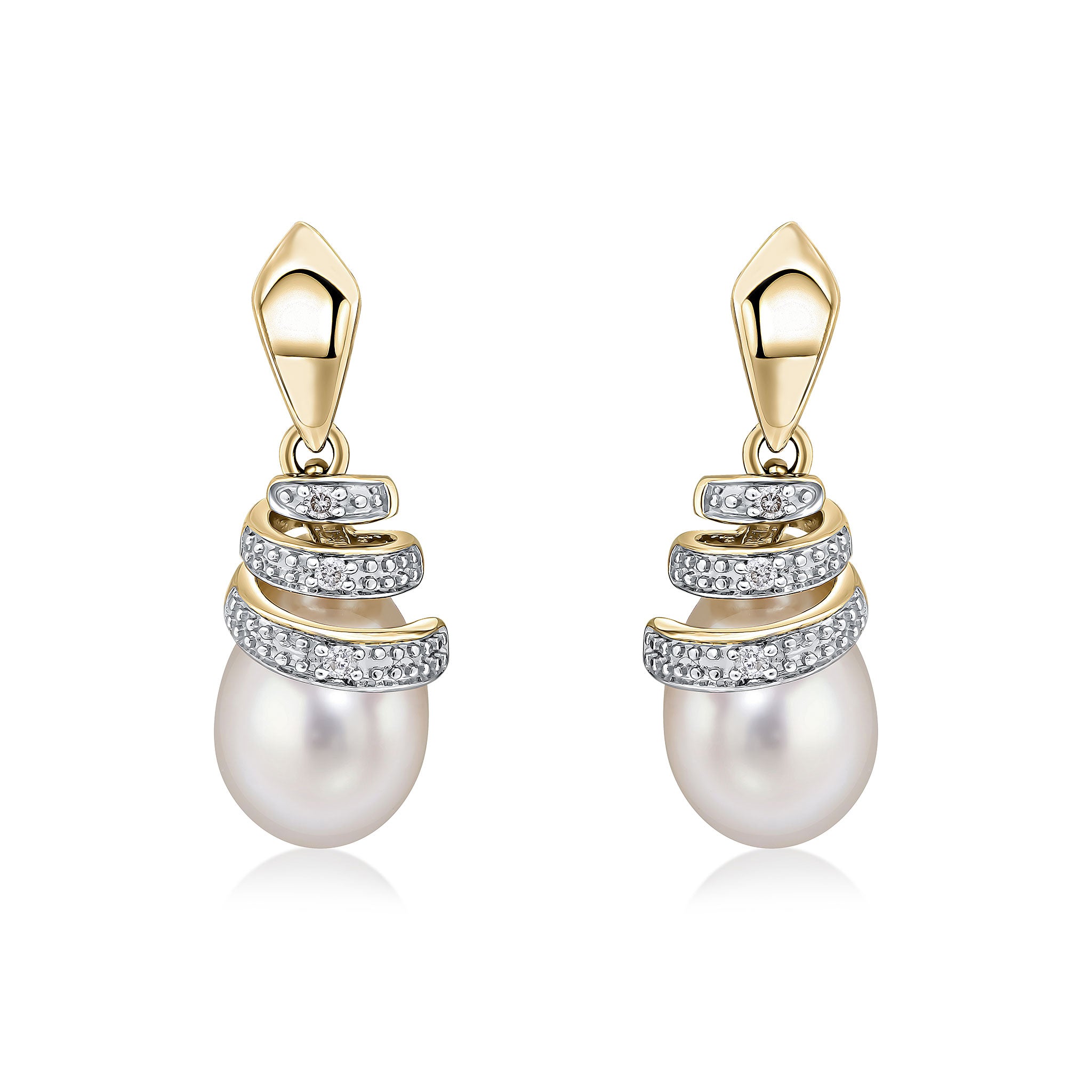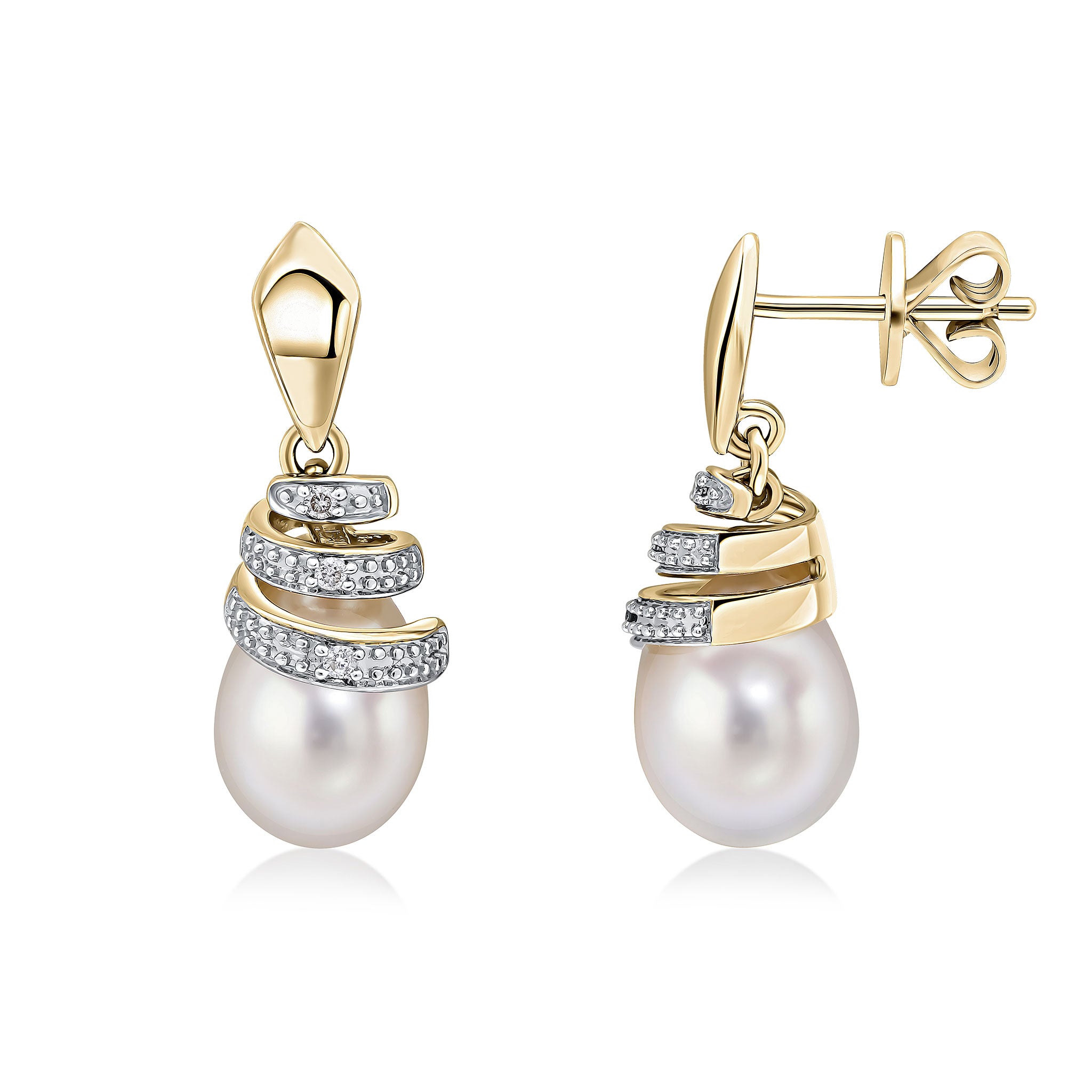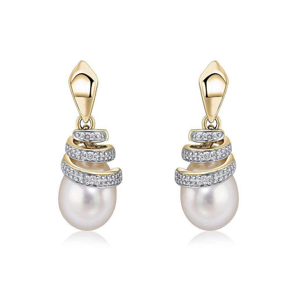 9CT Yellow Gold Diamond & Pearl Spiral Earrings