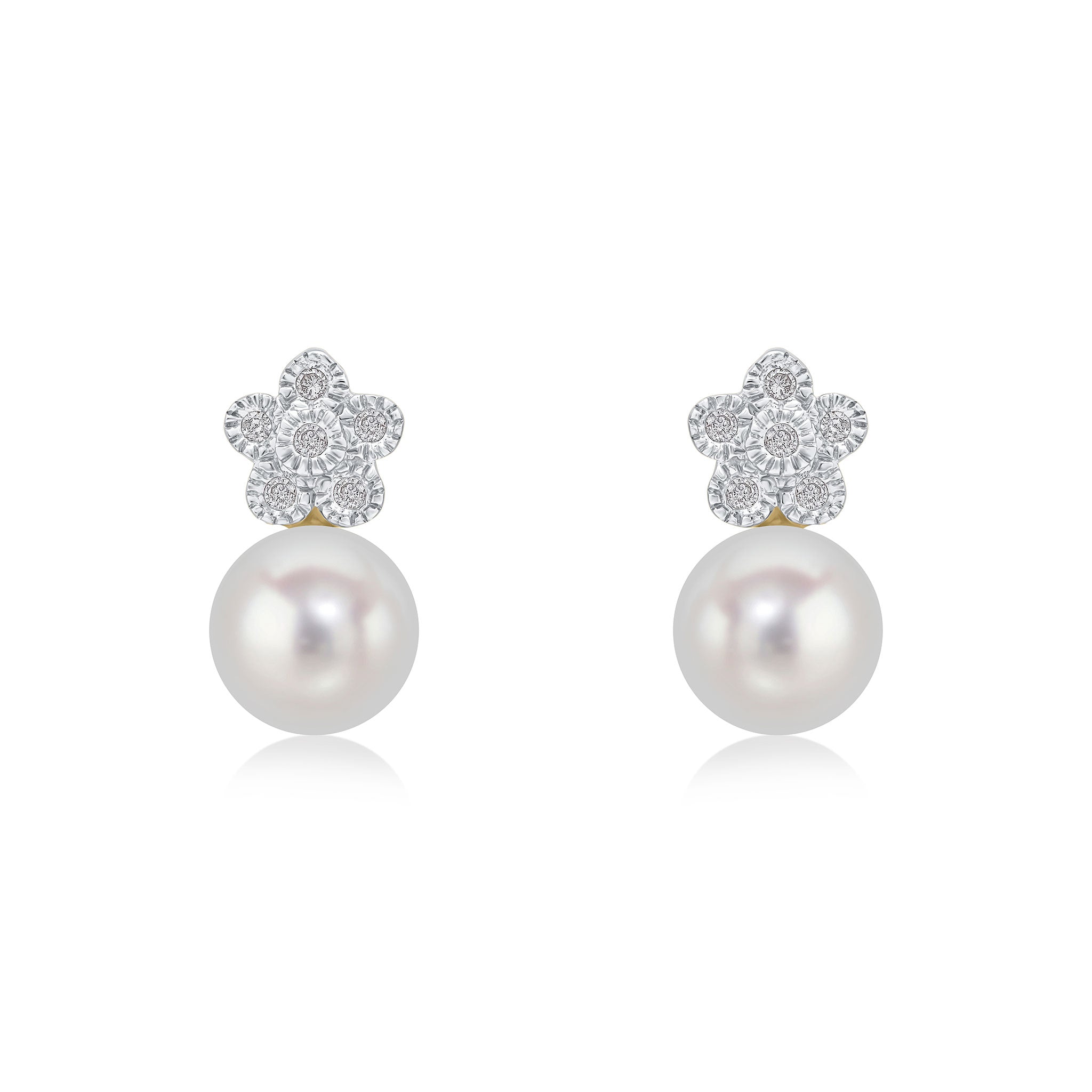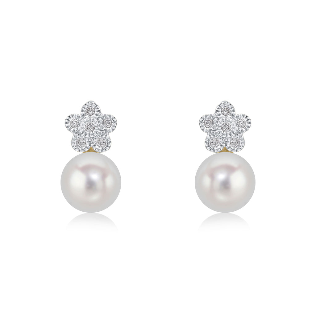 9CT Yellow Gold Diamond & Pearl Cluster Flower Earrings