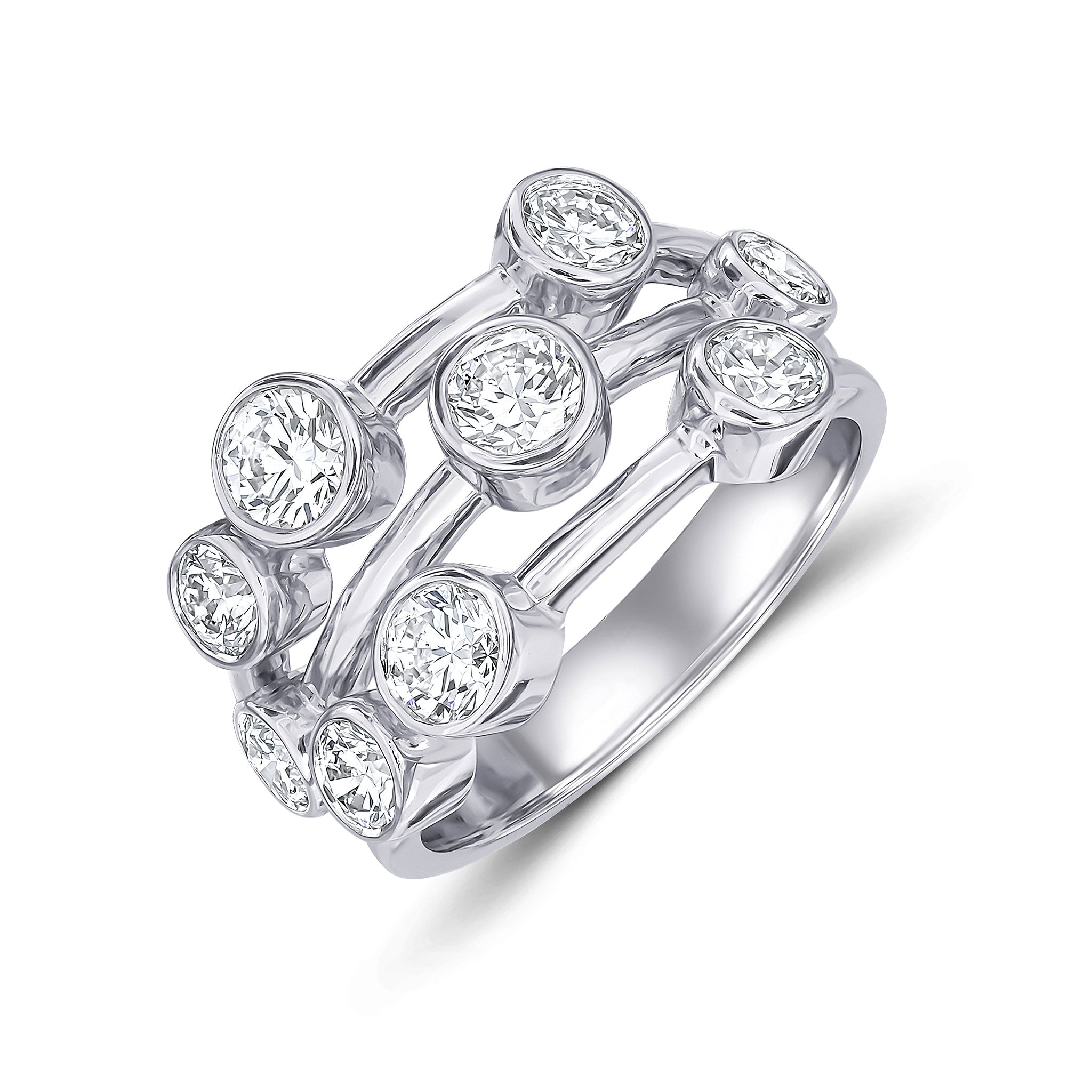 Platinum Diamond 3 Row Bubble Ring 1.75ct