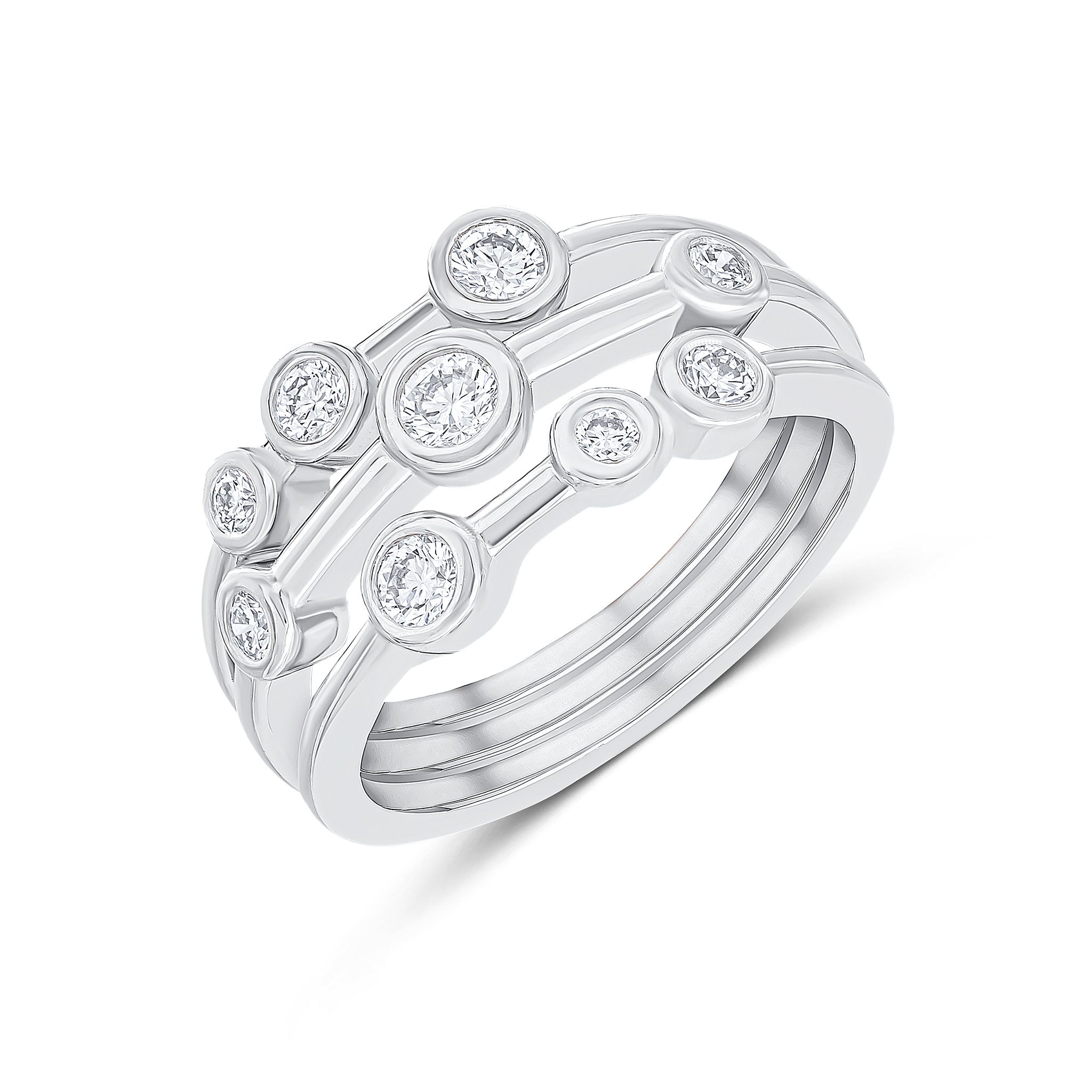Platinum Round Diamond Rubover Bubble 3 Row Band Ring 0.50ct