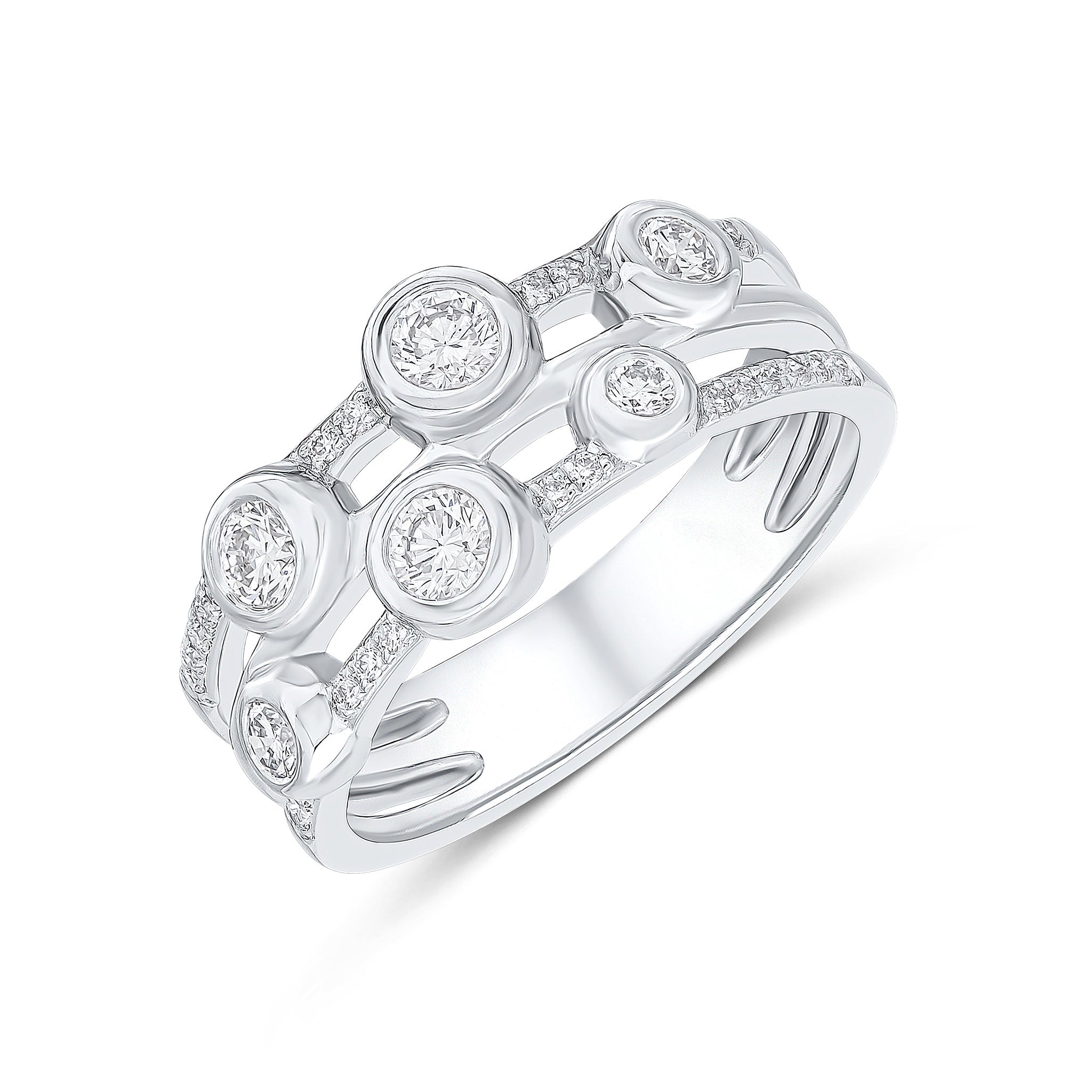Platinum Round Diamond Rubover & Grain Set 3 Row Bubble Ring