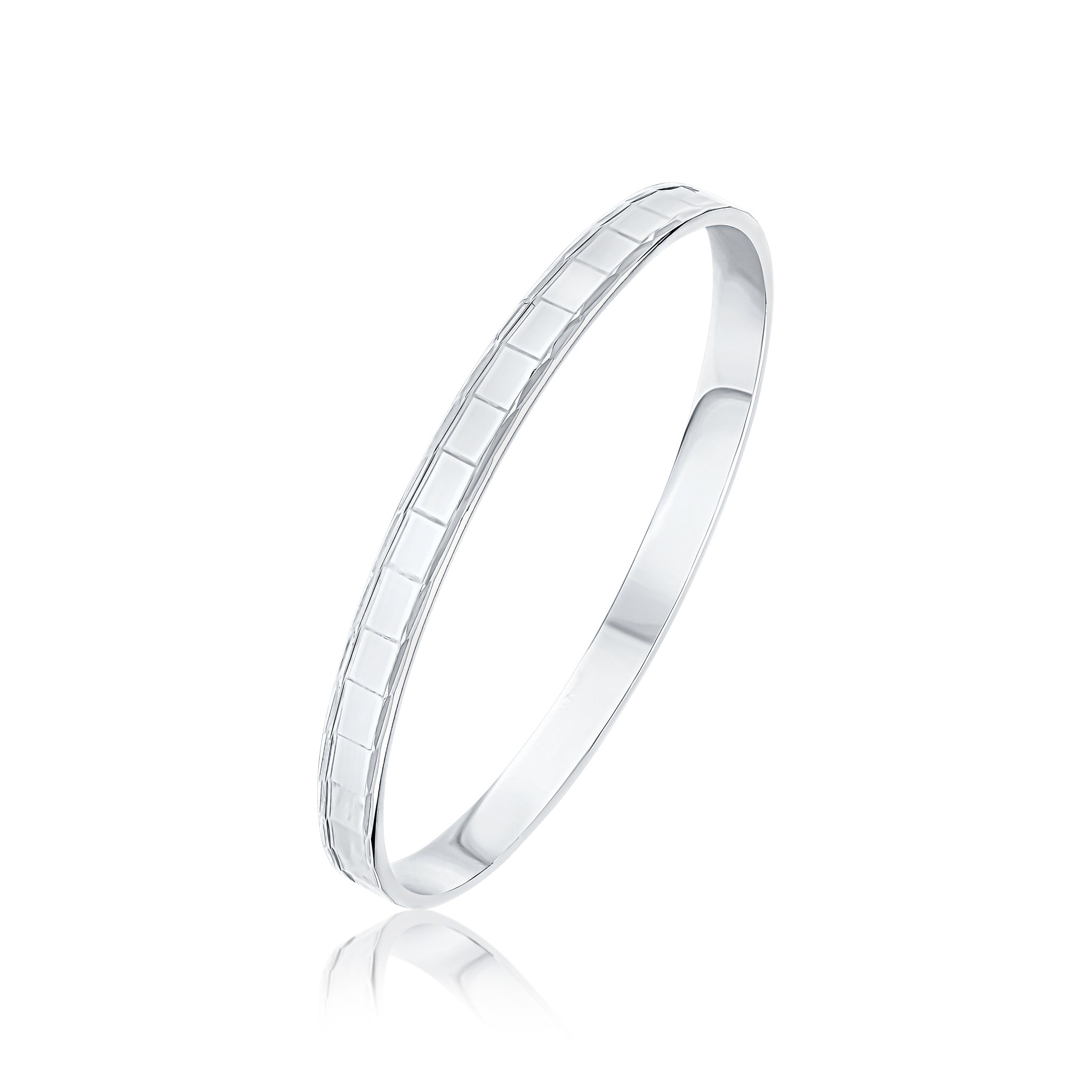 Silver 6mm Solid Flat Bangle with Diamond Cut Square Mirror Pattern 65mm