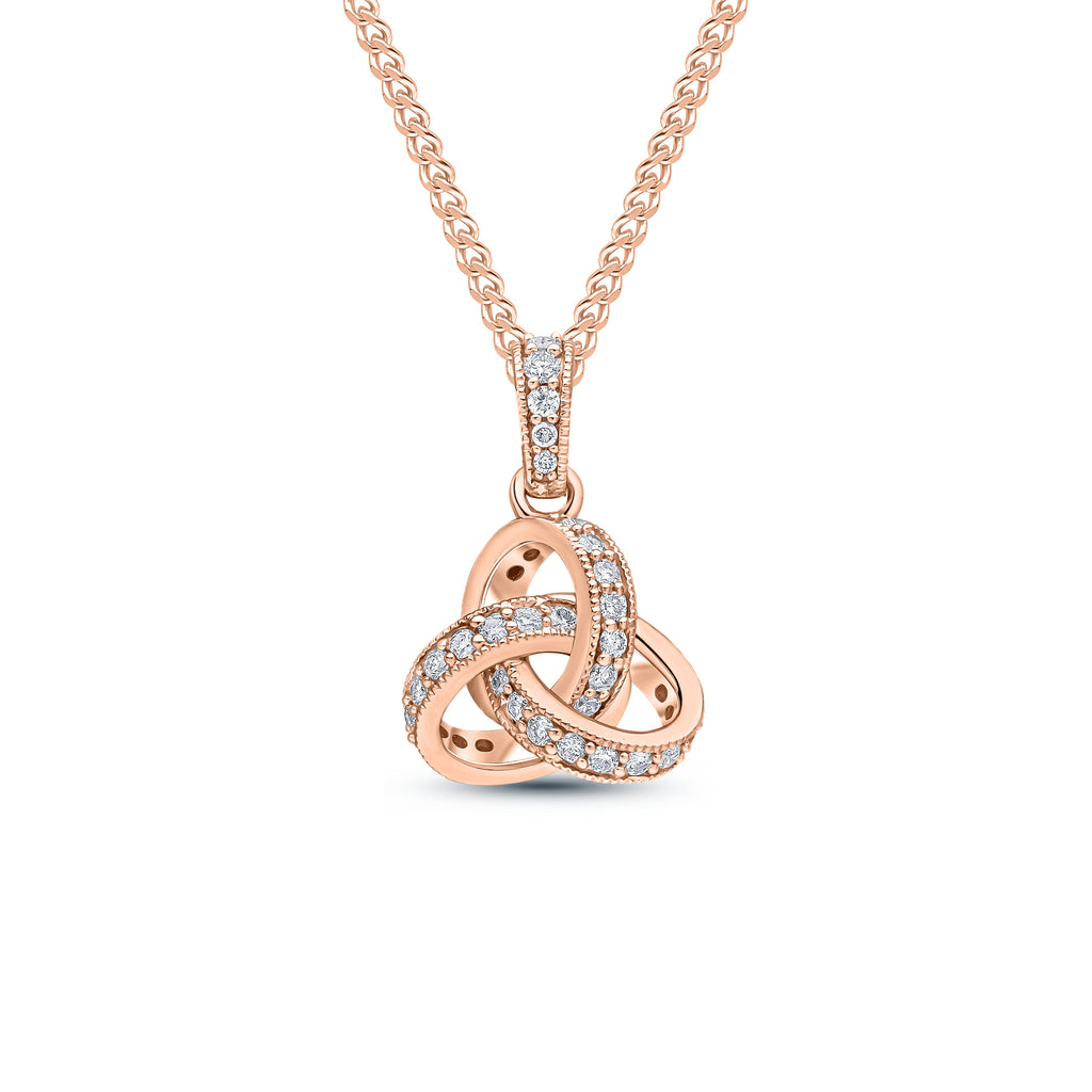 18CT Rose Gold Round Diamond Grain Set Knot Pendant with Diamond Set Loop 11mm