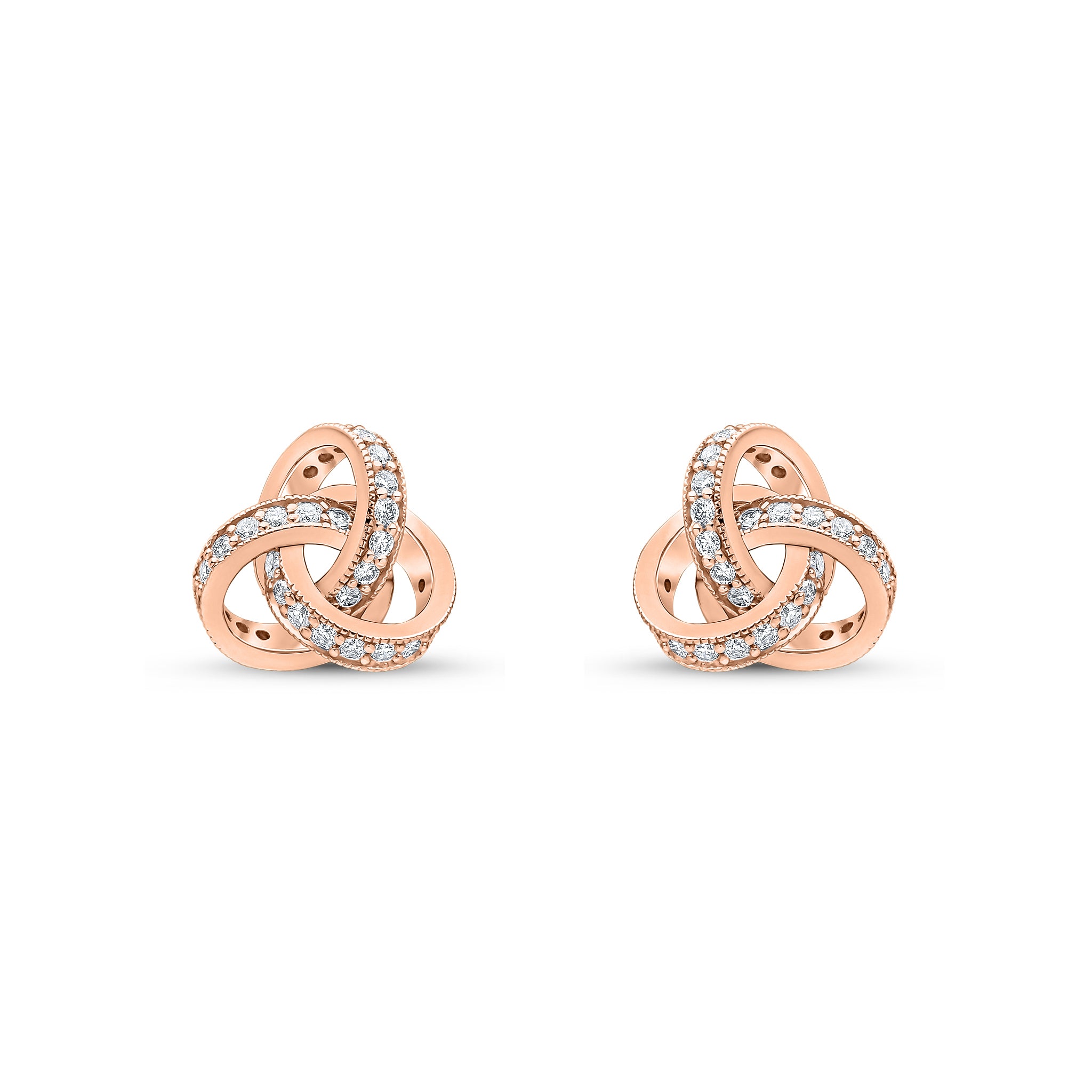 18CT Rose Gold Round Diamond Grain Set Knot Stud Earrings 10.5mm
