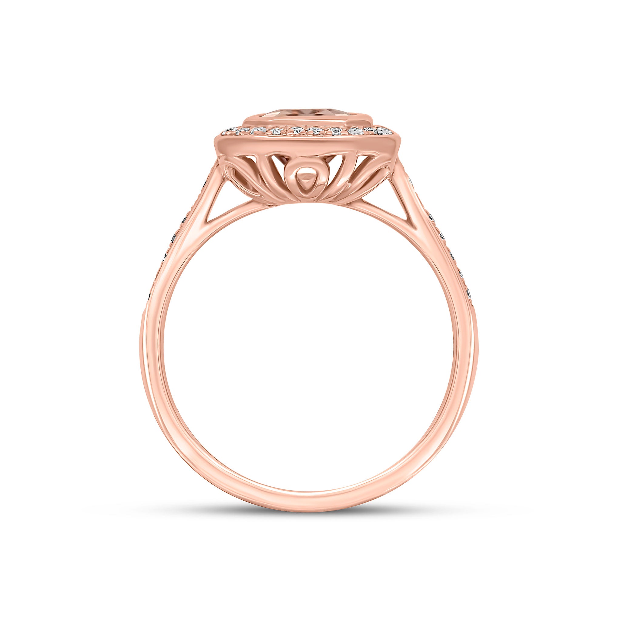 18CT Rose Gold Rubover Octagonal Morganite & Grain Set Round Diamond Cluster Ring 8x6mm