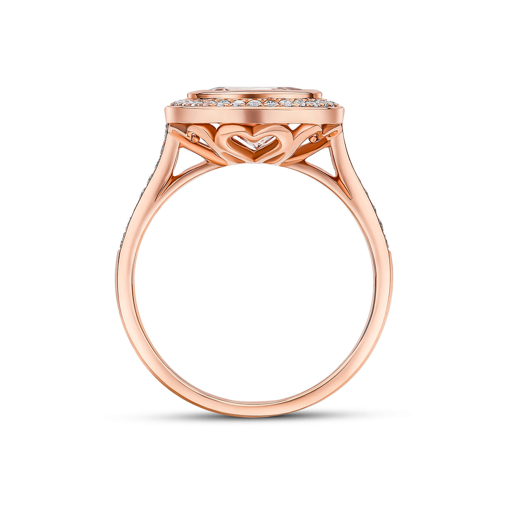 18CT Rose Gold Rubover Round Morganite & Grain Set Diamond Cluster Ring 8mm