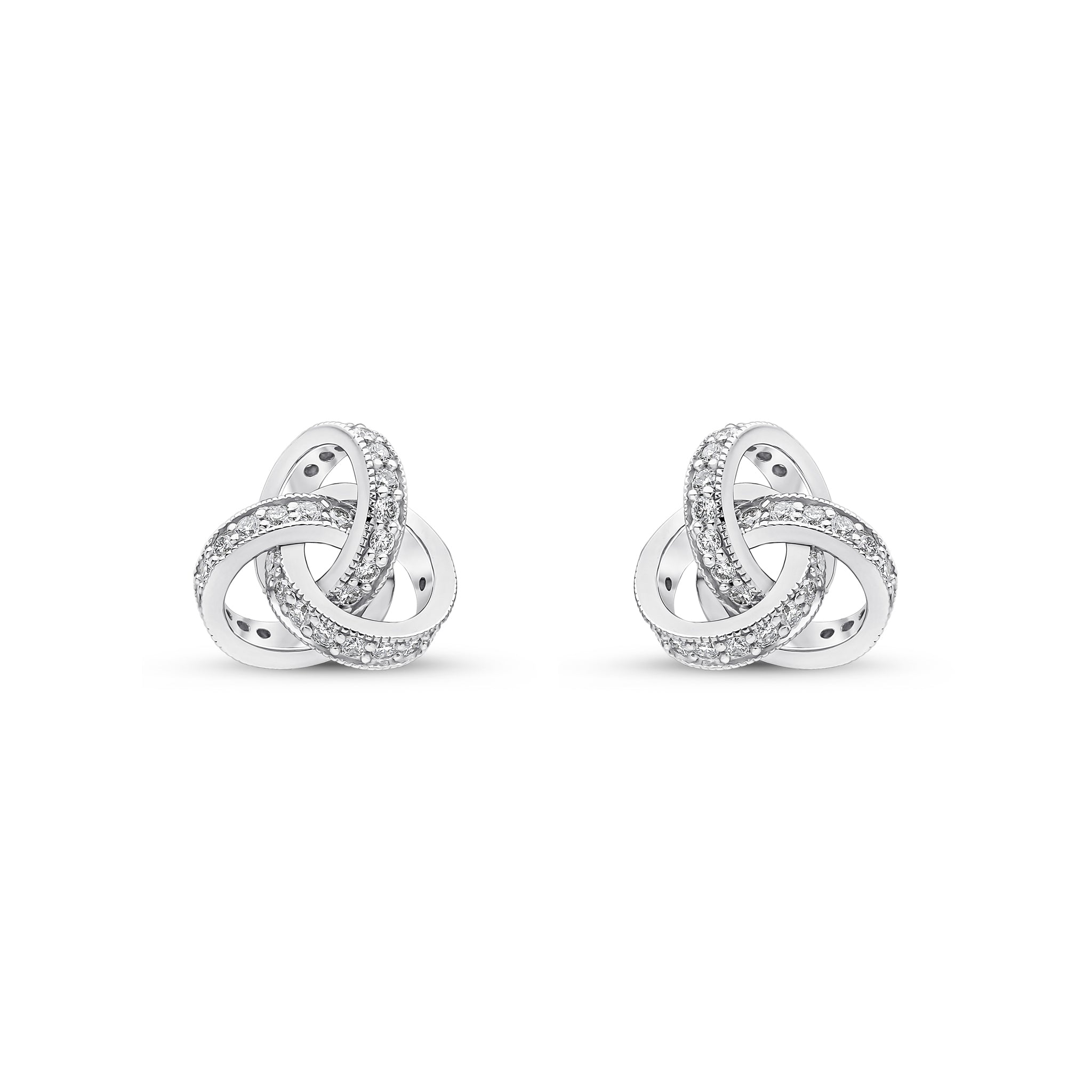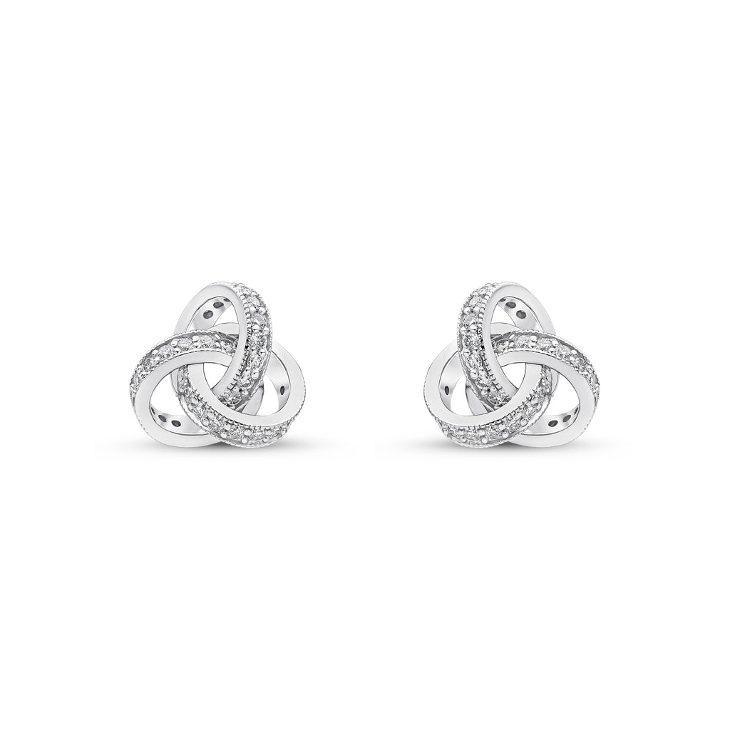 18CT White Gold Round Diamond Grain Set Knot Stud Earrings 10.5mm