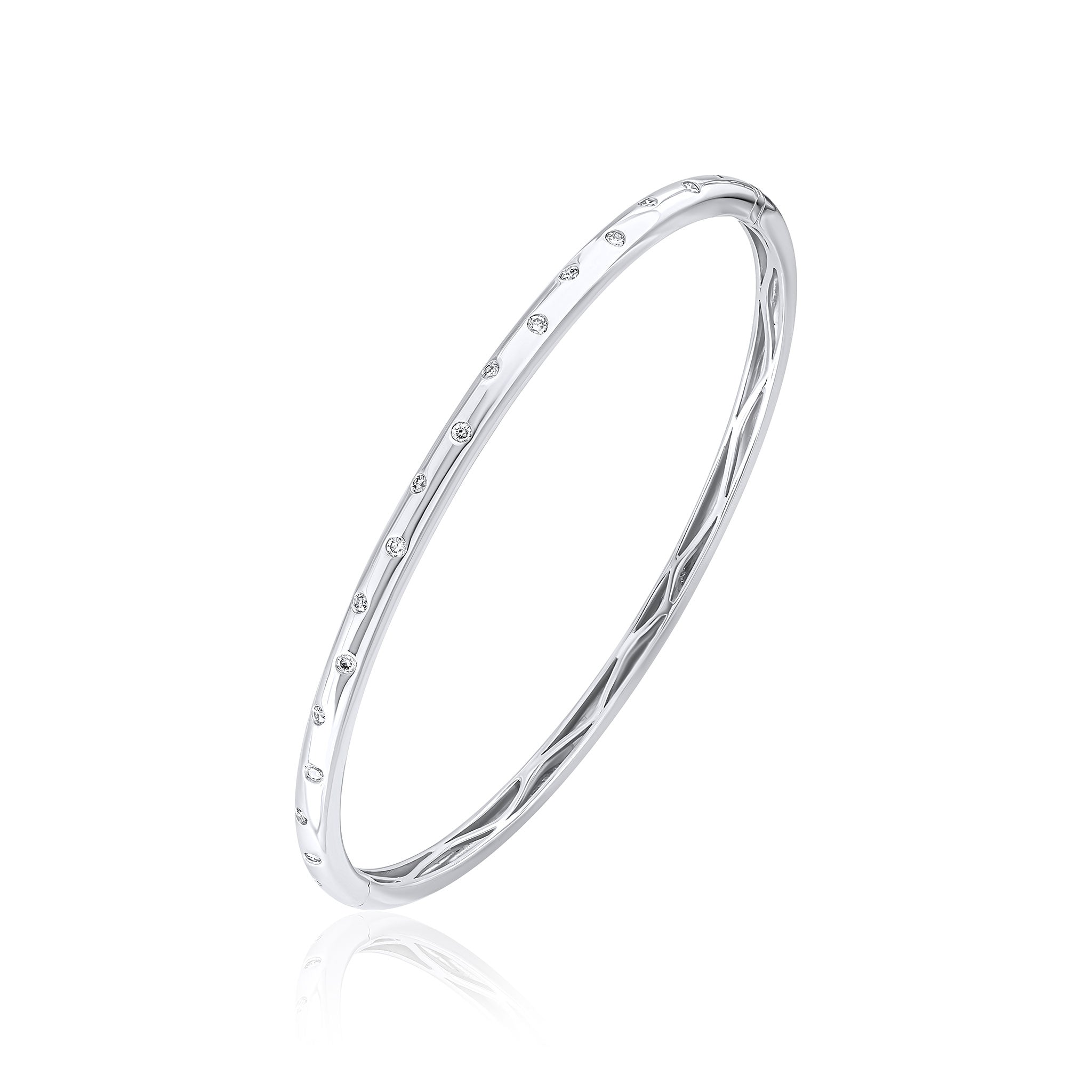 18CT White Gold Round Diamond Scatter Flush Set Polished Hinged Bangle