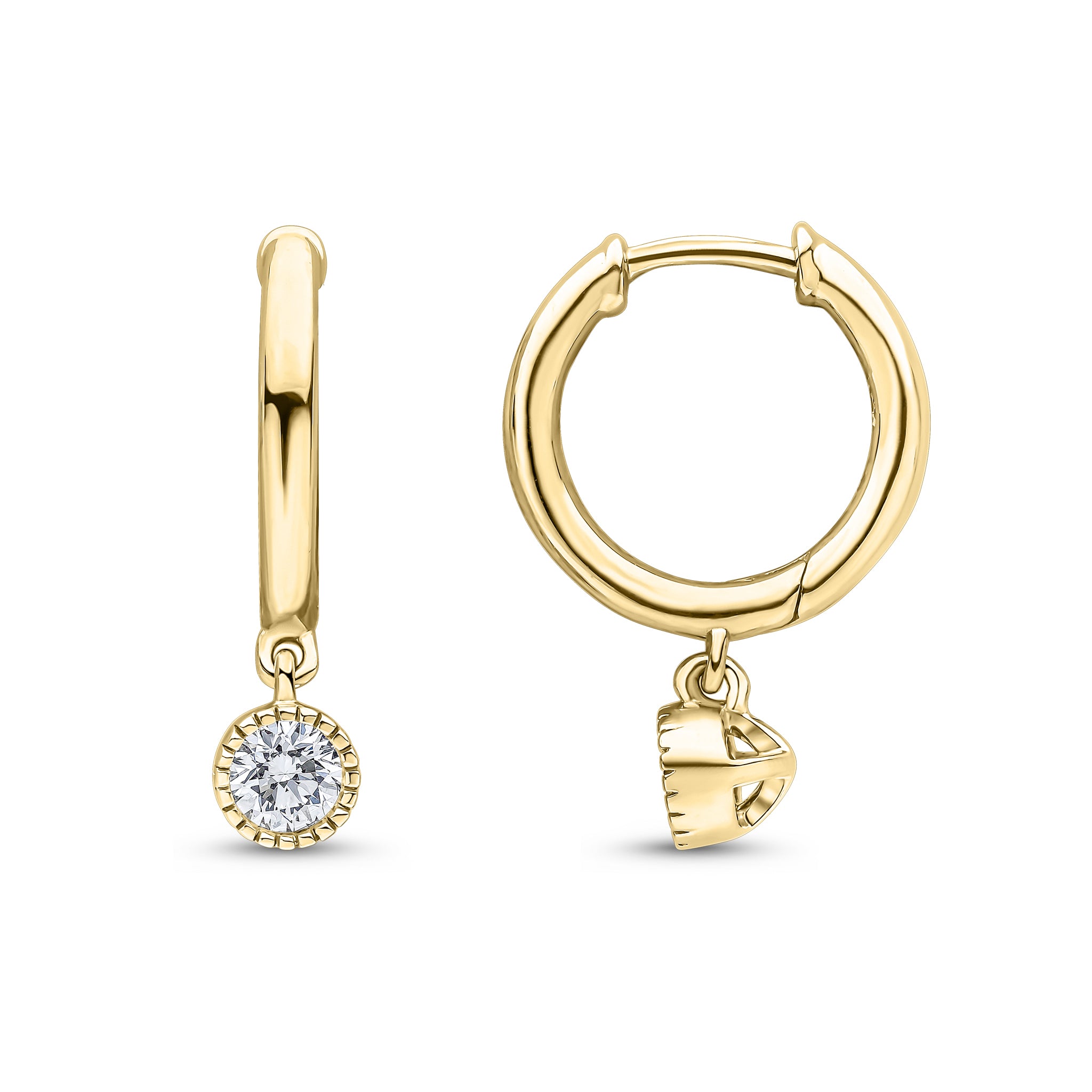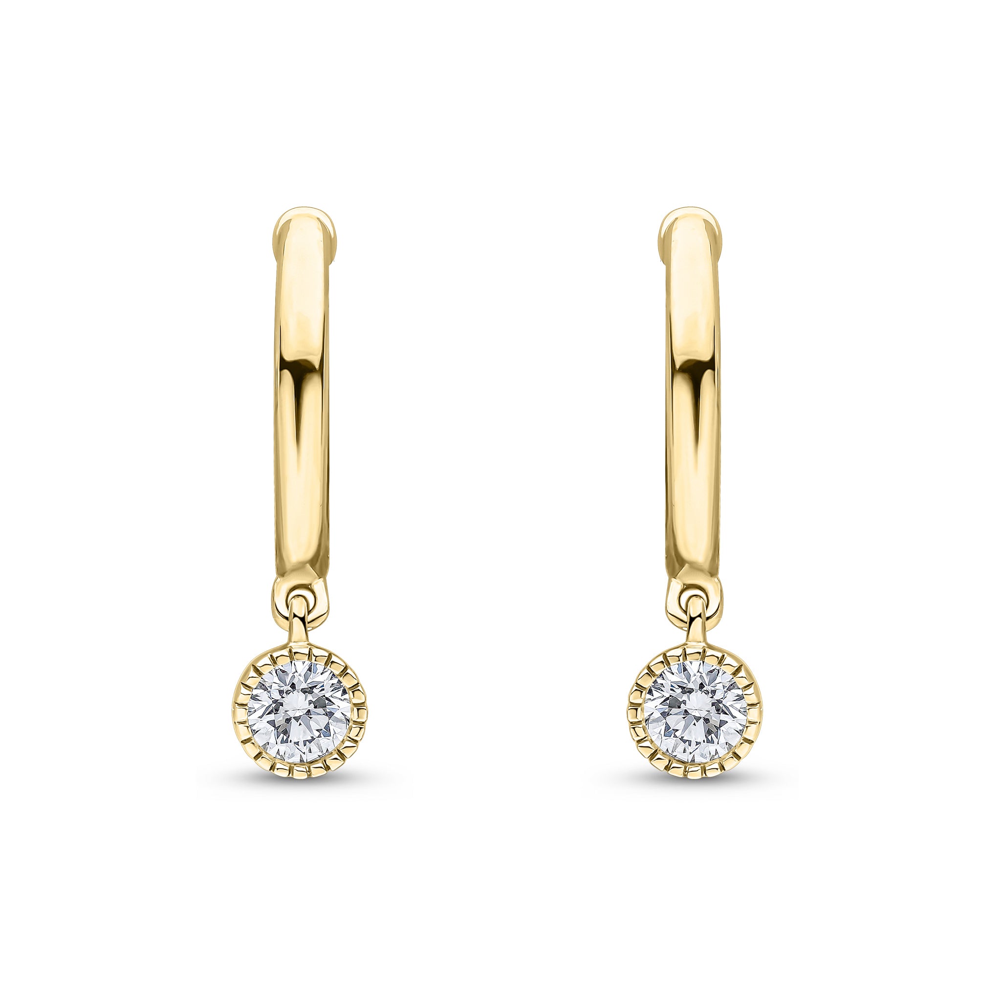 18CT Yellow Gold Hoop Earrings with Millegrain Set Round Diamond Drops