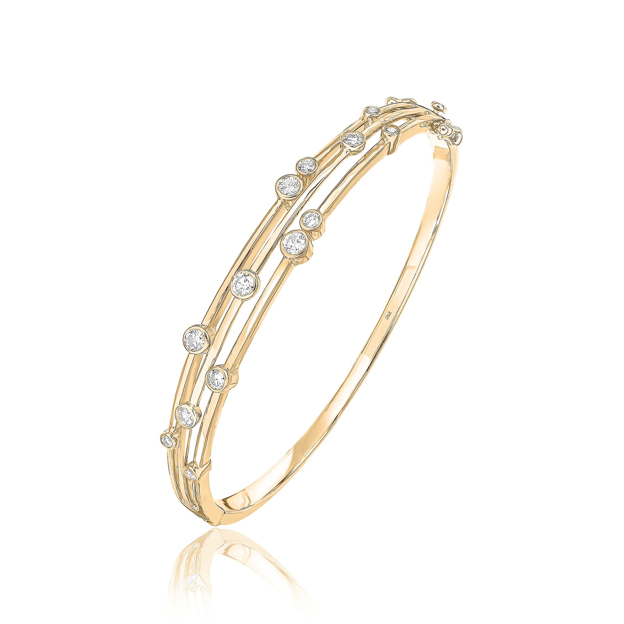 18CT Yellow Gold Round Diamond 3 Row Bubble Bangle