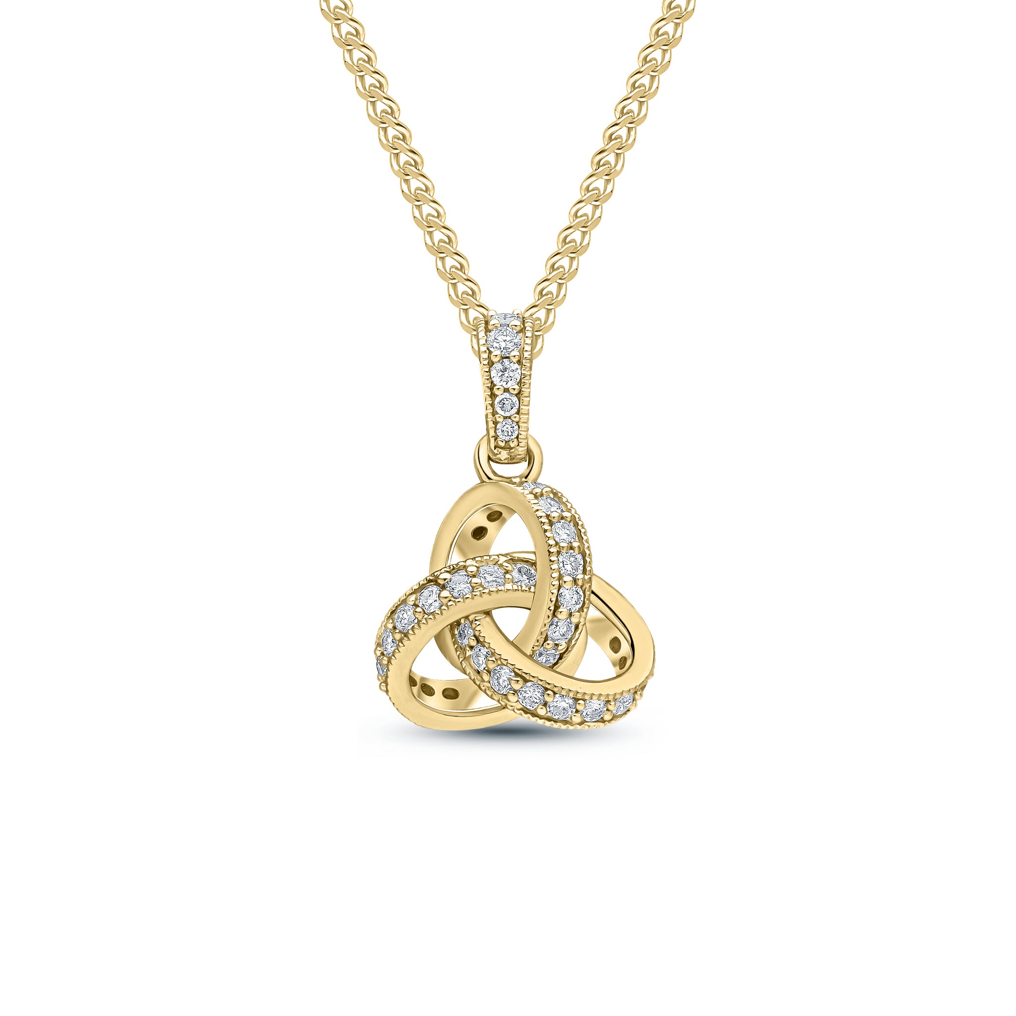 18CT Yellow Gold Round Diamond Grain Set Knot Pendant with Diamond Set Loop 11mm