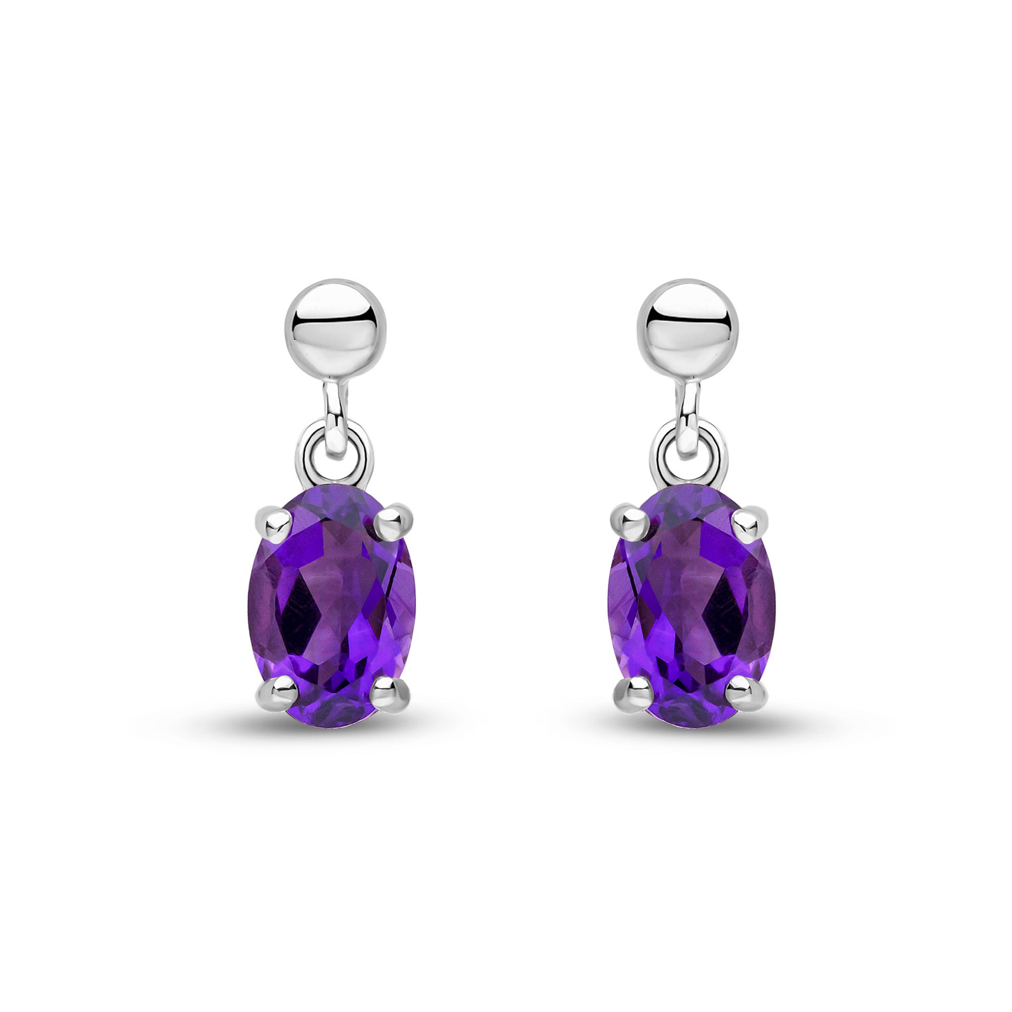 9CT White Gold Oval Amethyst Claw Drop Earrings 6x4mm