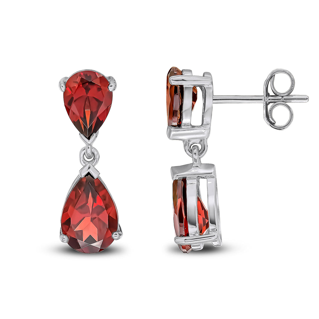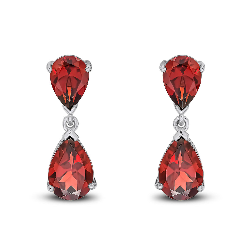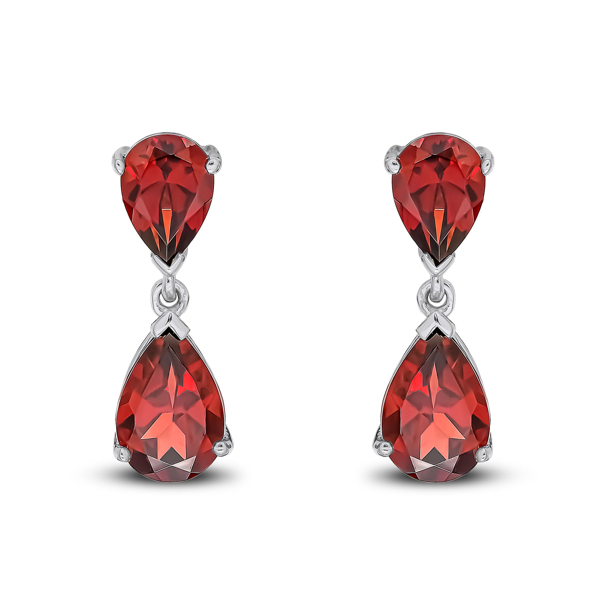 9CT White Gold Pear Shaped Garnet Double Stone Drop Earrings